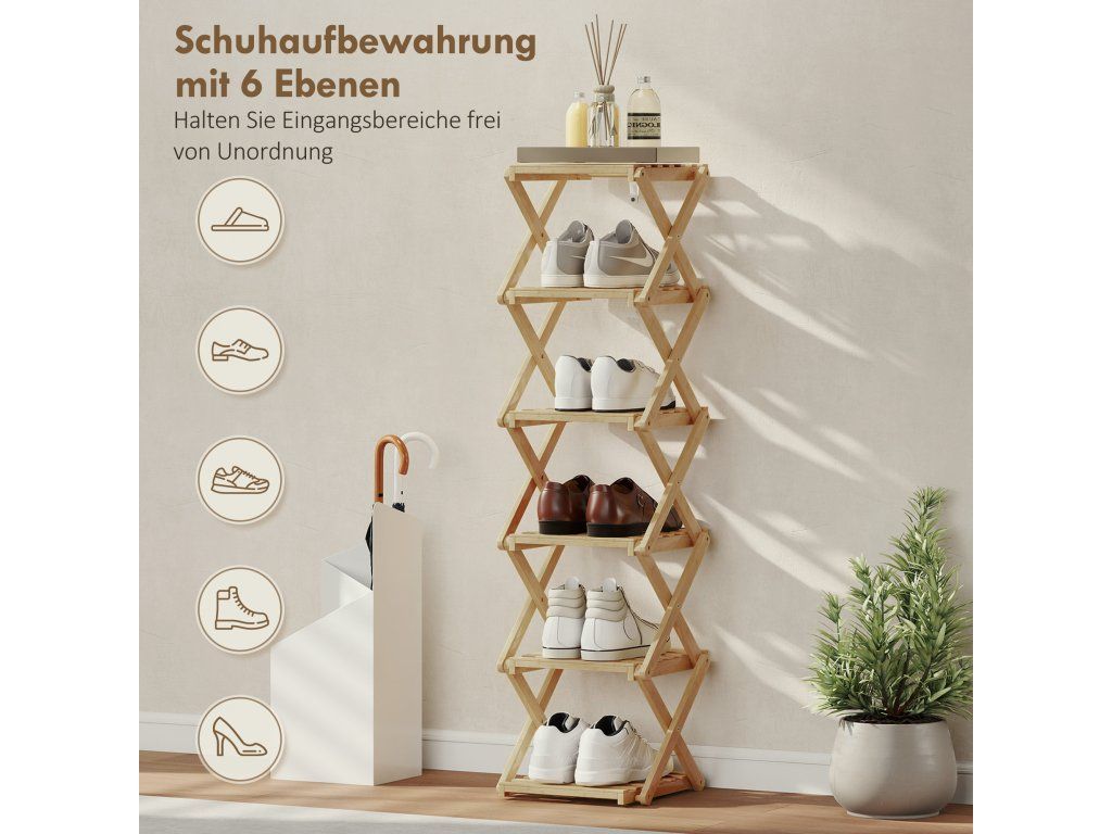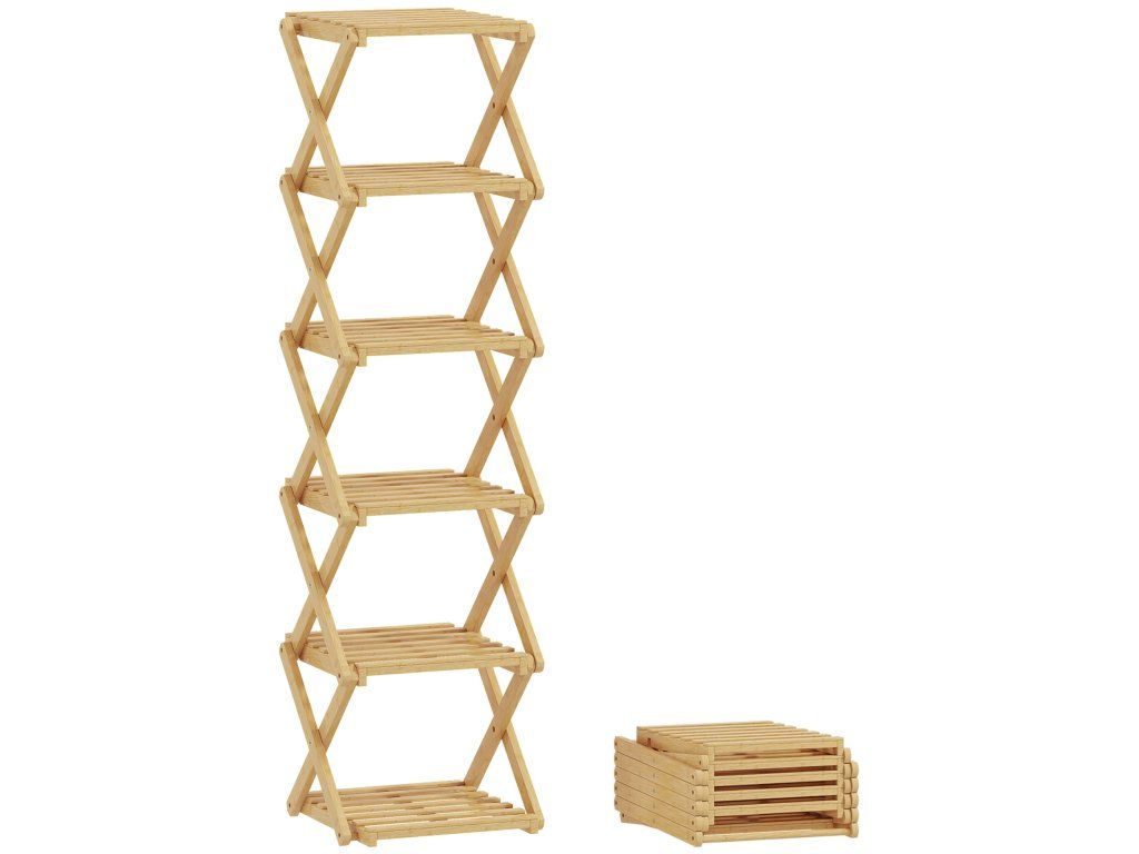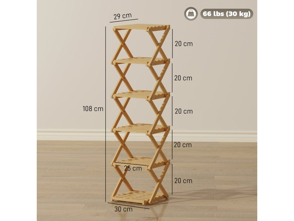 Skládací botník se 6 policemi 30 x 29 x 108 cm | přírodní
