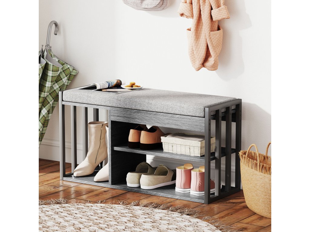 Botník s lavicí 86 x 30 x 45 cm | šedý