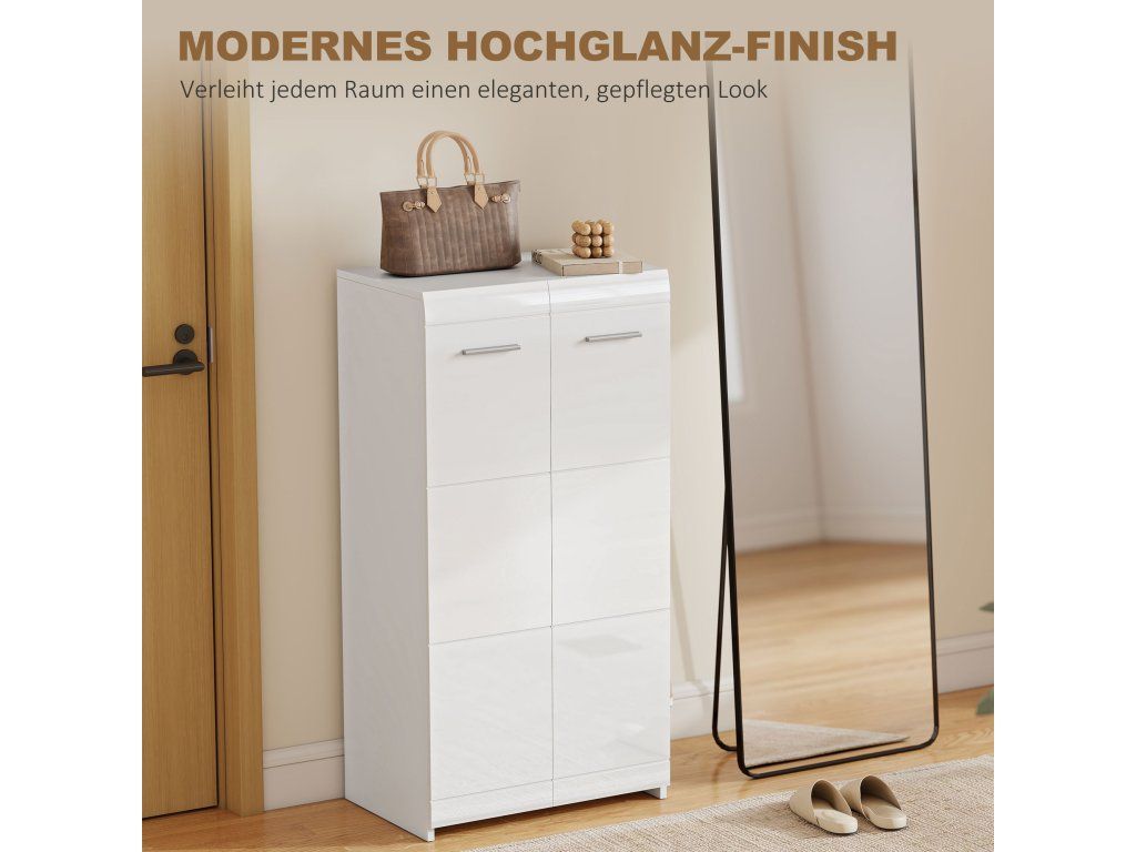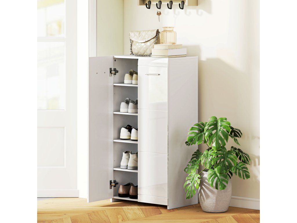 Elegantní doplněk do každé místnosti: Minimalistická silueta a vysoce lesklé panely dělají z této botníky stylové a funkční úložné řešení pro vstupní haly, ložnice, obývací pokoje nebo domácí kanceláře.