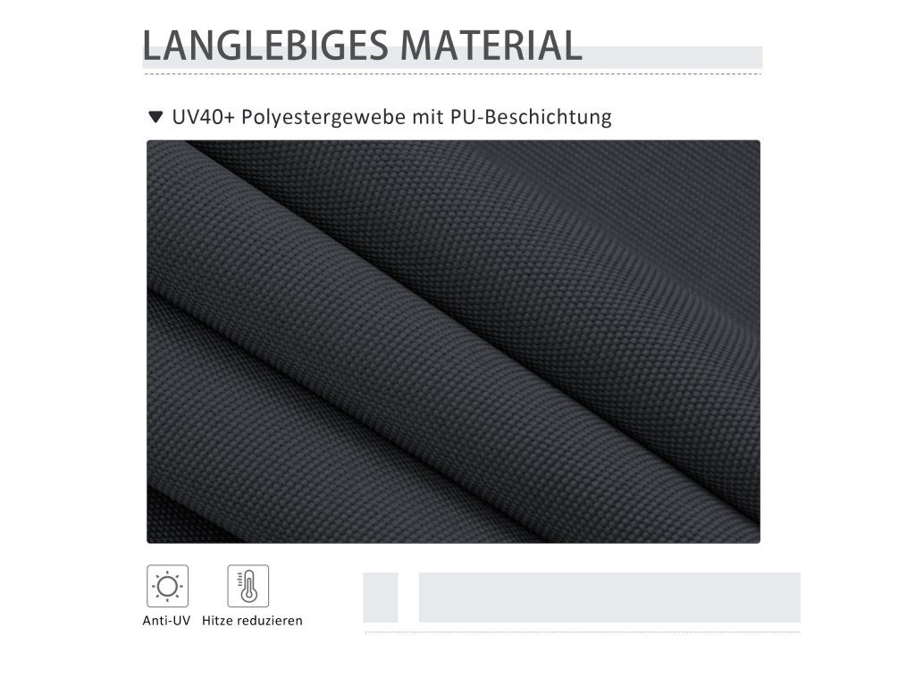 Ochranná konstrukce: Boční markýza je vyrobena z polyesteru potaženého umělou kůží s UV filtrem 40+, který poskytuje stín bez vyblednutí. Chraňte svou pokožku před škodlivými UV paprsky a užívejte si příjemného soukromí.