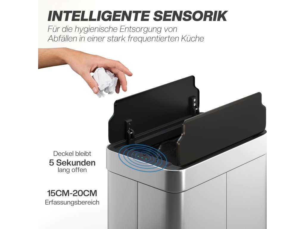 ✔ Pokročilý senzor tohoto koše na odpadky otevírá víko za 0,5 sekundy pro bezdotykové a hygienické použití.