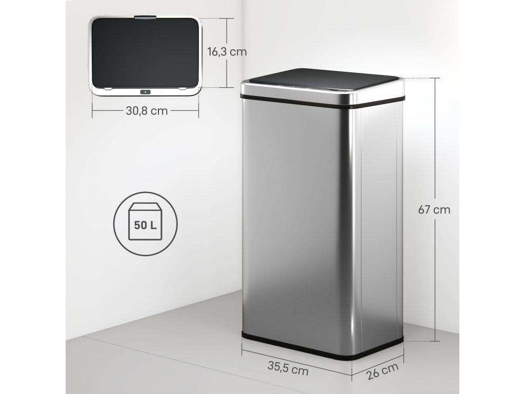 Senzorový odpadkový koš 35,5 x 26 x 67 cm | stříbrný