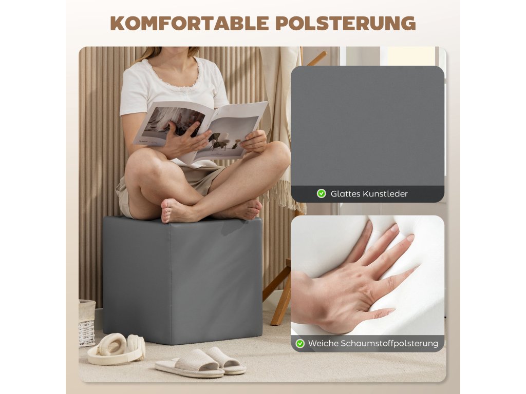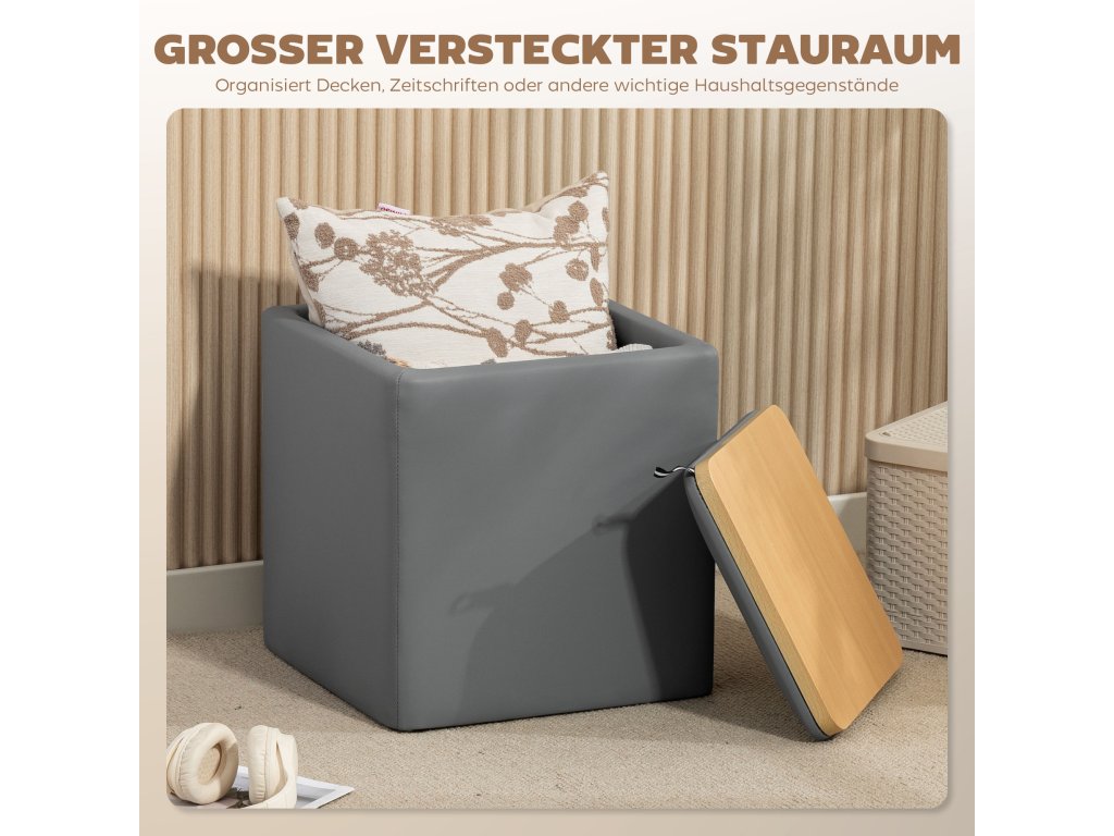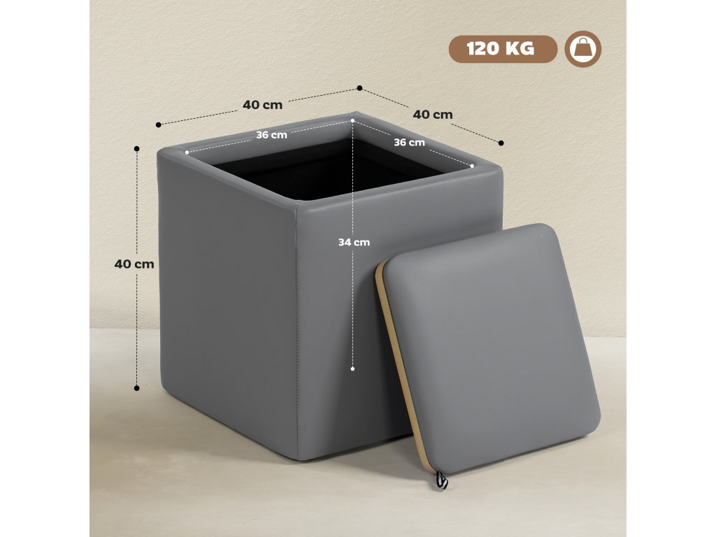 ✔ Úložná taburetka je vyrobena ze snadno čistitelné umělé kůže s měkkým pěnovým polstrováním pro trvalé pohodlí.
