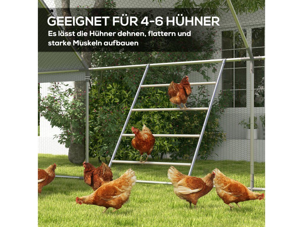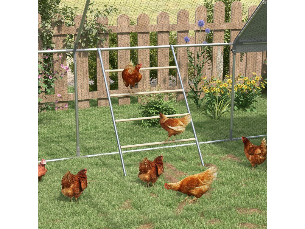 Odolná konstrukce: Tento žebřík na bidla je vyroben z 25 mm silných pozinkovaných ocelových trubek a robustních dřevěných tyčí, takže vydrží i ta nejaktivnější slepice a je odolný vůči povětrnostním vlivům.