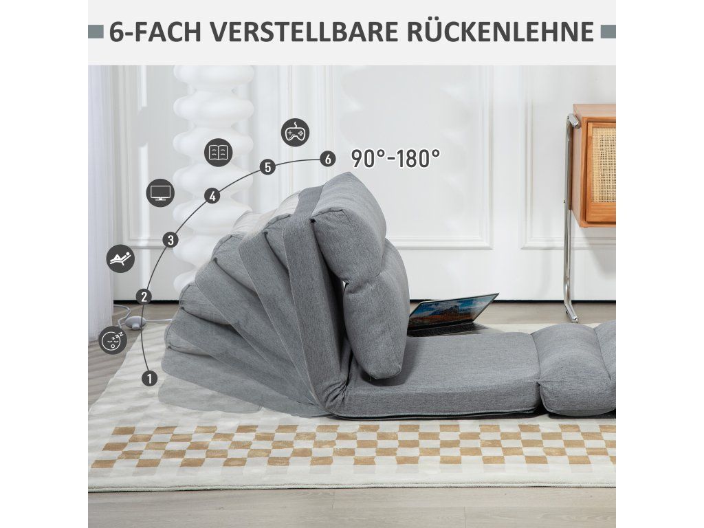 Všestranné Nastavení: Opěradlo této podlahové židle lze nastavit v 6 polohách mezi 90 a 180 stupni a proměnit ji v křeslo, lehátko nebo postel – ideální pro hraní her, meditaci, sledování televize, čtení nebo spaní.