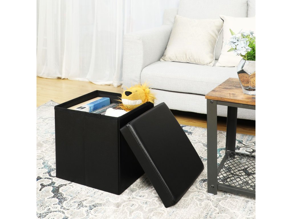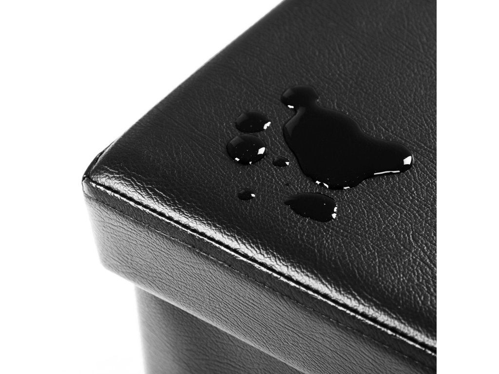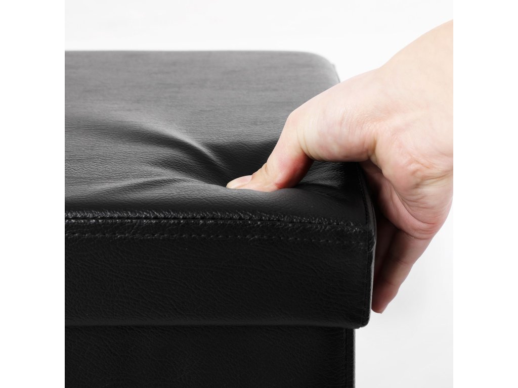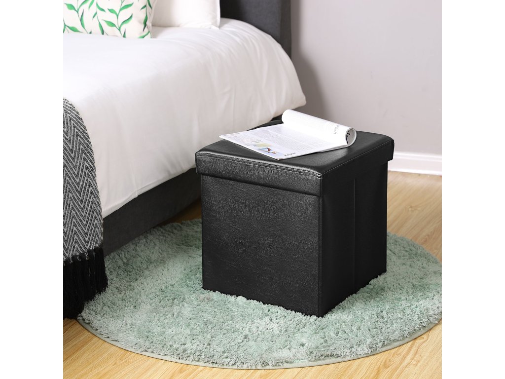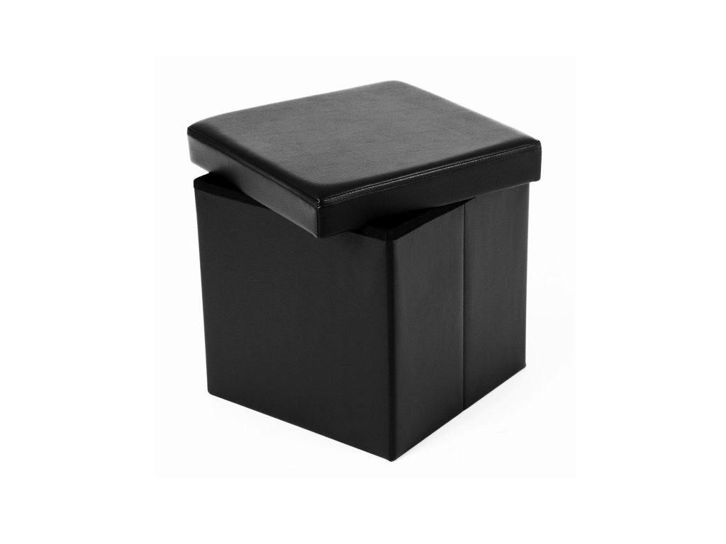 Skládací podnožka, 38 x 38 x 38 cm, umělá kůže v černé barvě.