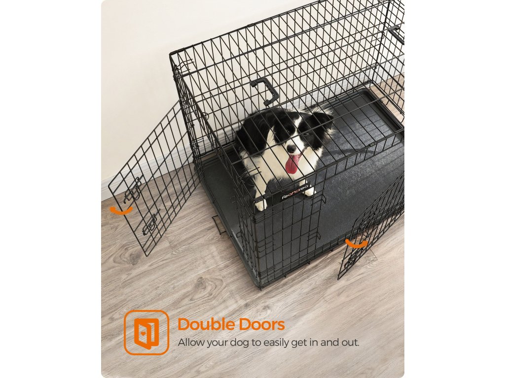 Skládací přepravka pro psy, 107 cm, 2 dveře, XL, černá.