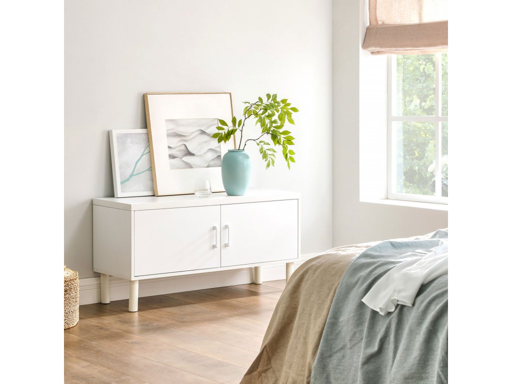 Skříňka na boty s dvířky v bílé barvě. Úložný prostor navíc.