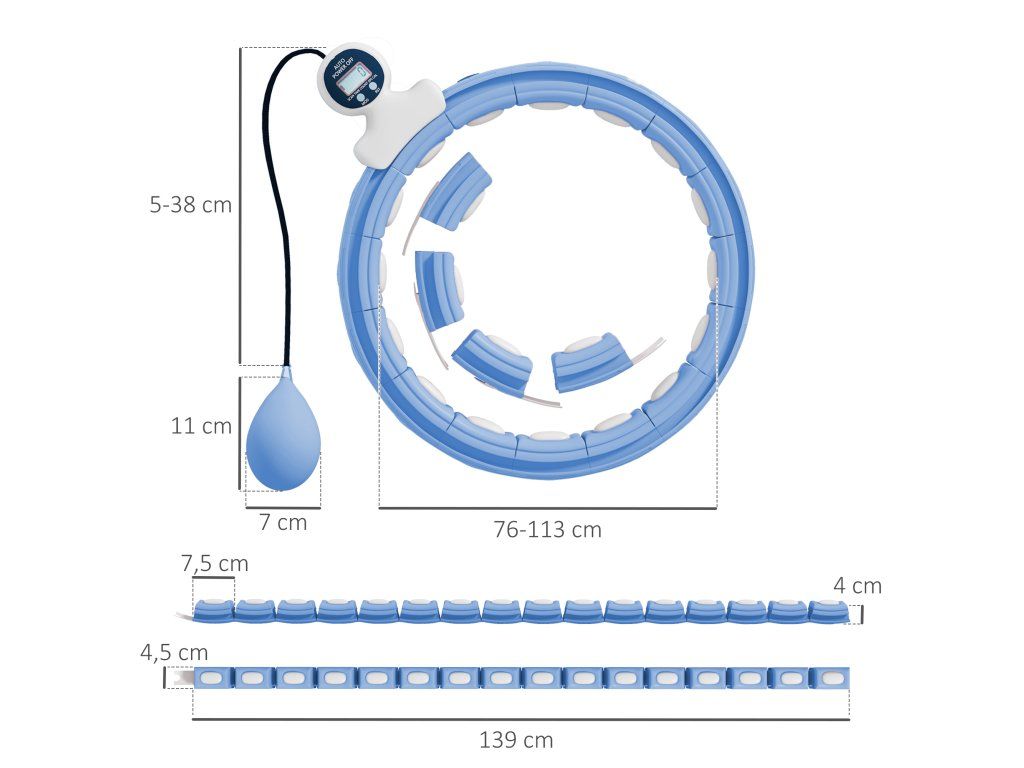 Nastavitelný design: S 16 odnímatelnými segmenty je tato hula hoop na hubnutí vhodná pro obvod pasu od 76 do 113 cm a nabízí perfektní přizpůsobení pro různé velikosti postavy.