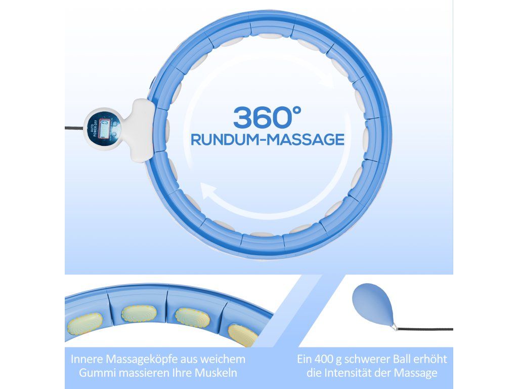 ✔ Závažová koule hula hoop o hmotnosti 400 g poskytuje 360° masáž pro kompletní pokrytí pasových svalů.