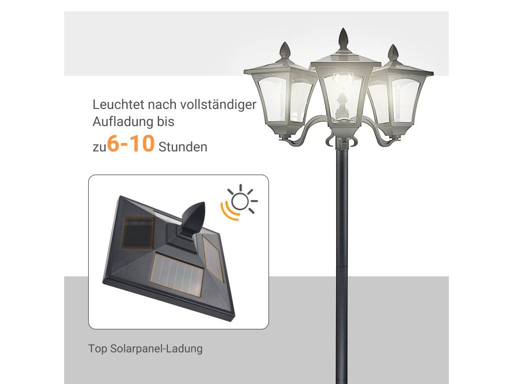 ✔ Energeticky úsporná zahradní lampa má 3 světla, z nichž každé obsahuje 4 kusy a-Si solárních panelů.