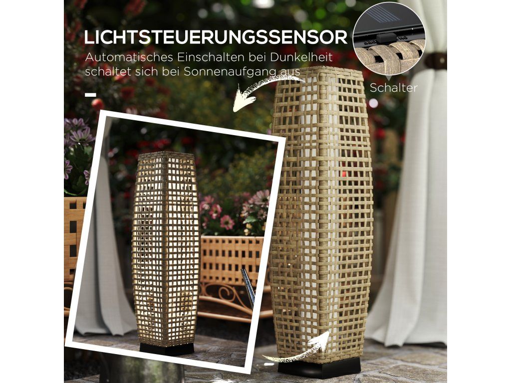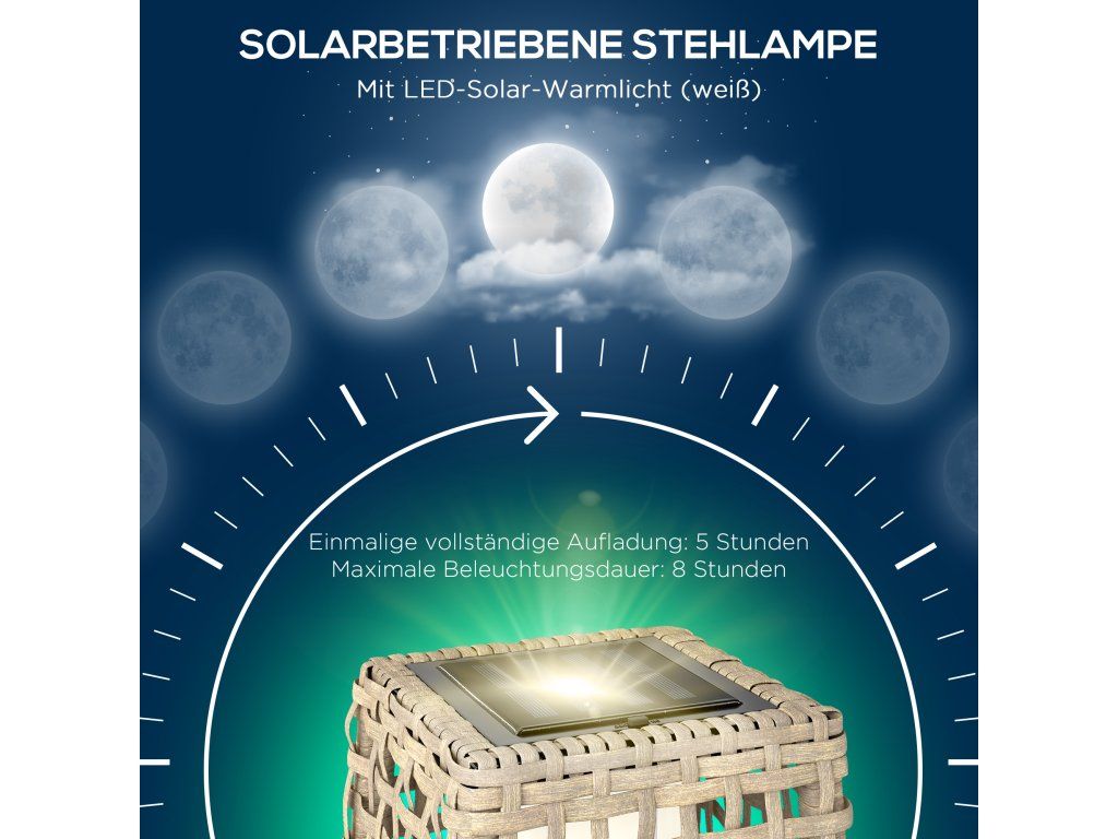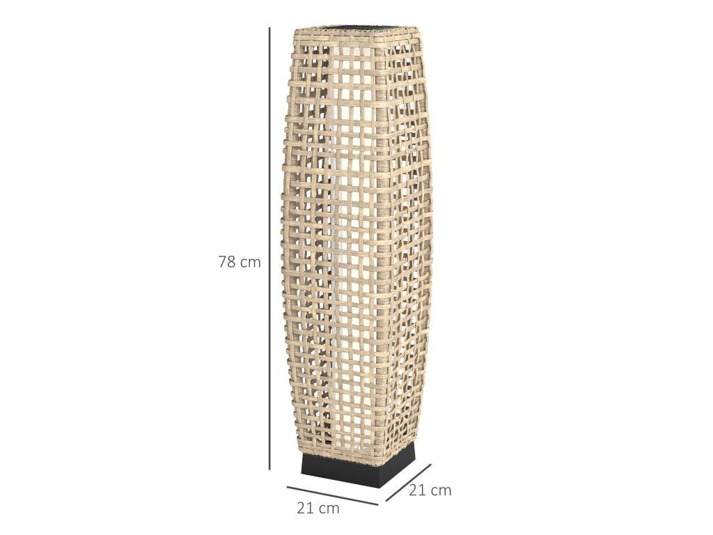Tato solární lucerna dokonale doplní vaši zahradu. Pletený design harmonicky ladí s vaším zahradním nábytkem. Díky solární LED lampě se nabíjí na slunci a poskytuje 15 lumenů jasu pro atmosférické osvětlení. Automatické zapínání/vypínání zajišťuje pohodlné používání. Na jedno nabití vydrží až osm hodin světla – ideální pro večery a noci venku.
