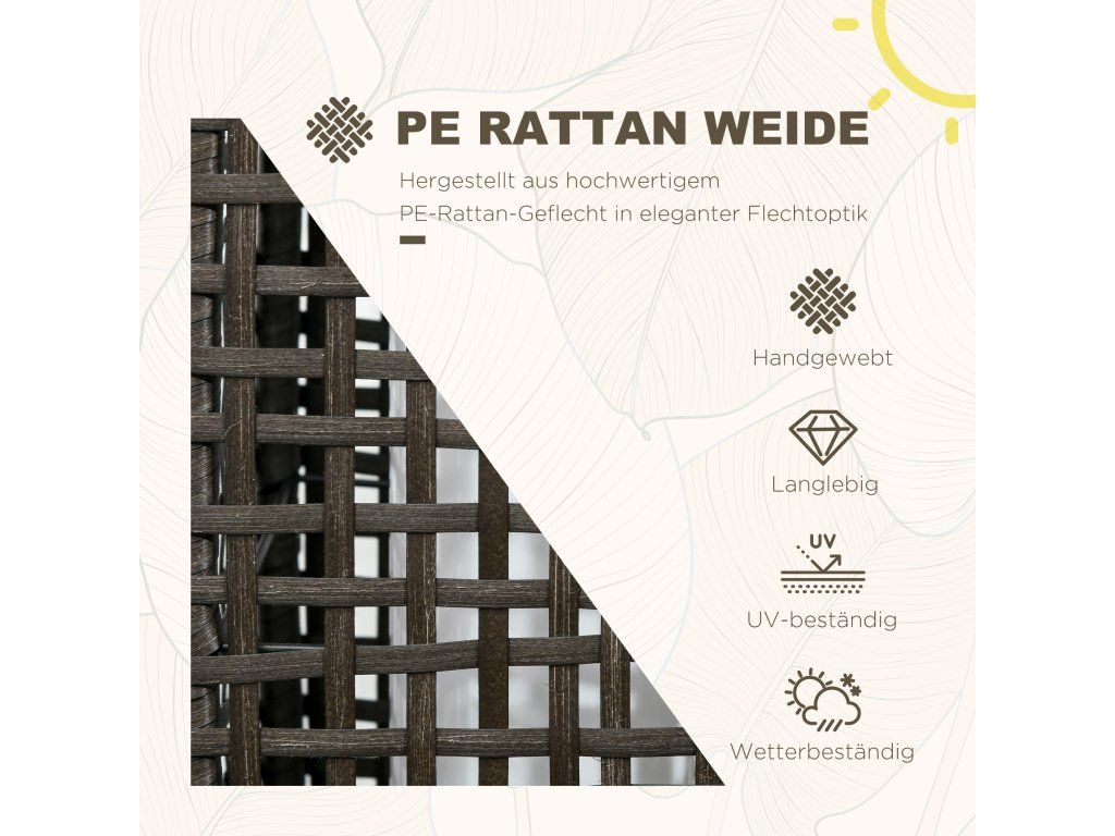 Ocelový rám potažený ratanem: Design kombinuje robustnost a estetiku: Robustní kovový rám potažený vysoce kvalitním plastovým proutím zajišťuje dvojnásobnou odolnost a stylový vzhled.