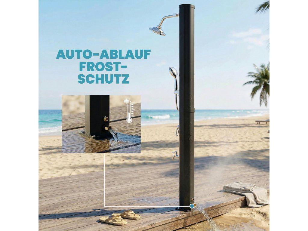 Už vás nebaví studené sprchy a zamrzlé potrubí v zimě? Solární sprcha nabízí celoroční použití díky systému ochrany proti mrazu. Užijte si teplou sprchu poháněnou sluncem po koupání nebo si pohodlně očistěte písečné nohy a domácí mazlíčky s ruční zahradní sprchou. Proměňte svou zahradu v relaxační útočiště.