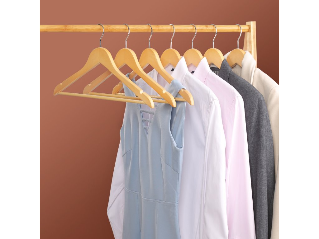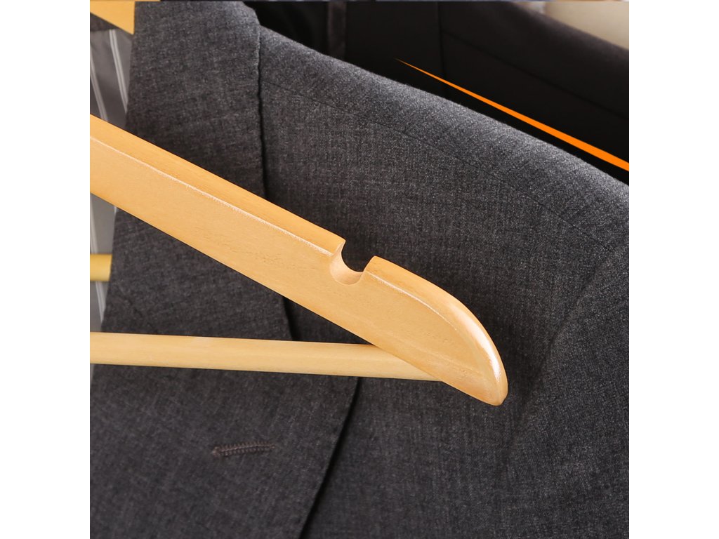 Dřevěná ramínka z javorového dřeva pro dospělé s tyčí na kalhoty.