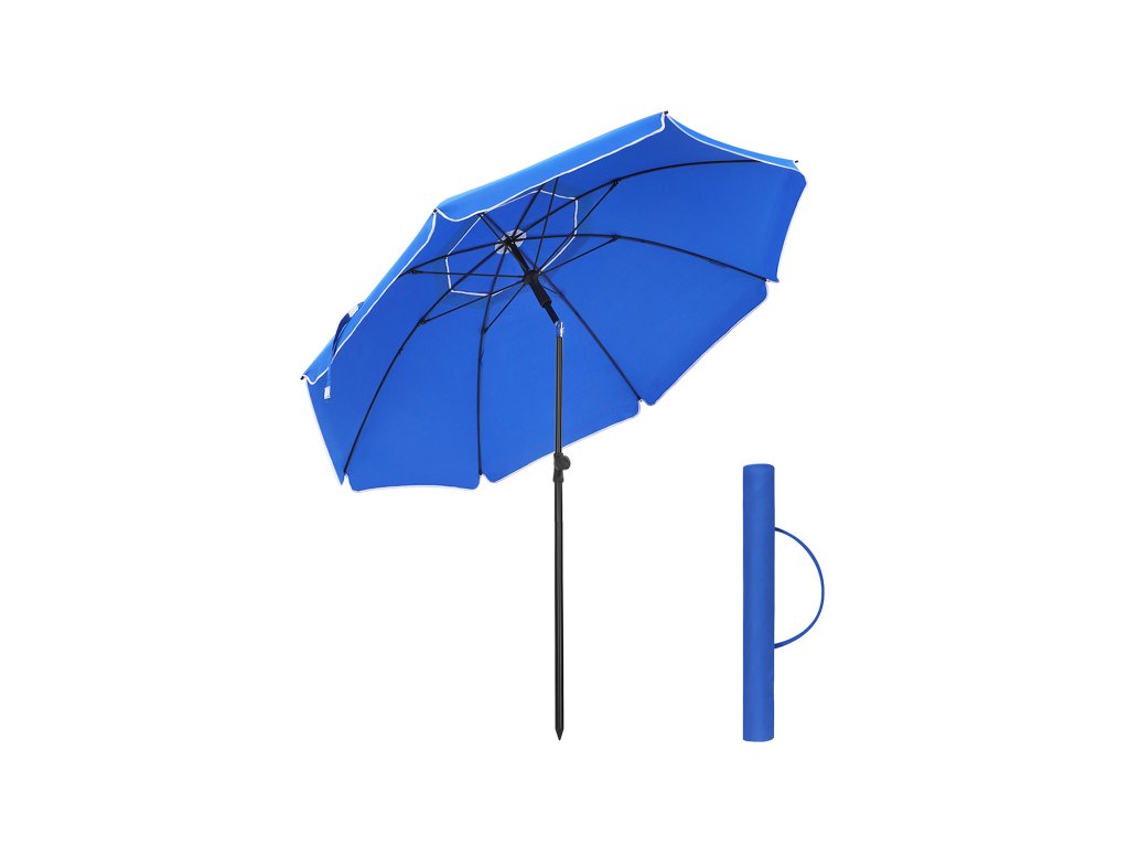 1,6 m slunečník, plážový slunečník, UPF 50+, ochrana proti slunci, přenosná osmiúhelníková polyesterová stříška, žebra ze skelných vláken, naklápěcí mechanismus, taška na přenášení, na pláž, balkon, bazén, modrá.