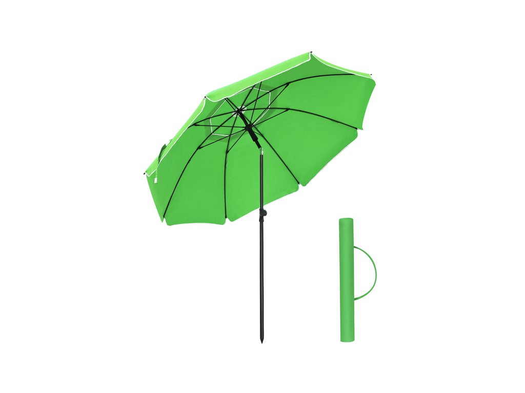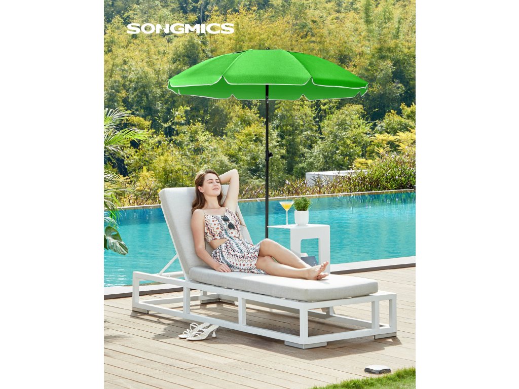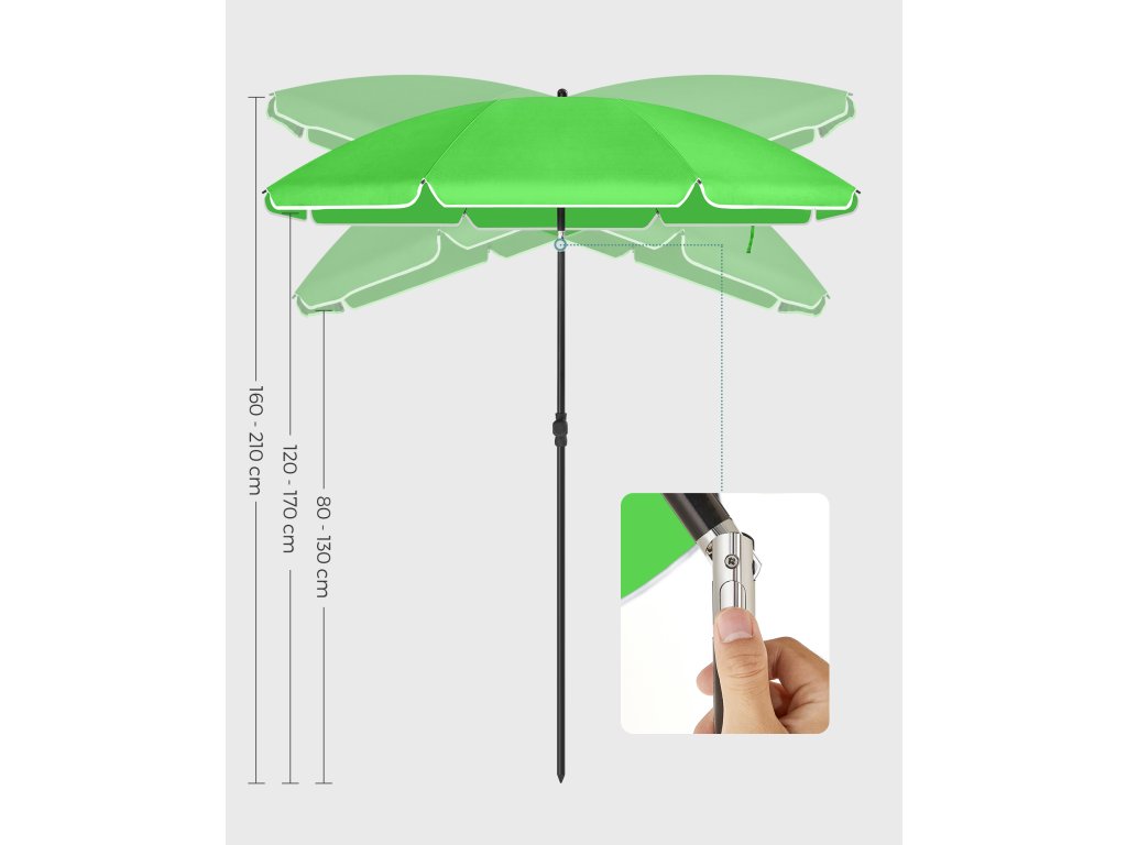 1,6 m slunečník, plážový slunečník, UPF 50+, ochrana proti slunci, přenosná osmiúhelníková polyesterová stříška, žebra ze skelných vláken, naklápěcí mechanismus, taška na přenášení, na pláž, balkon, bazén, zelená.