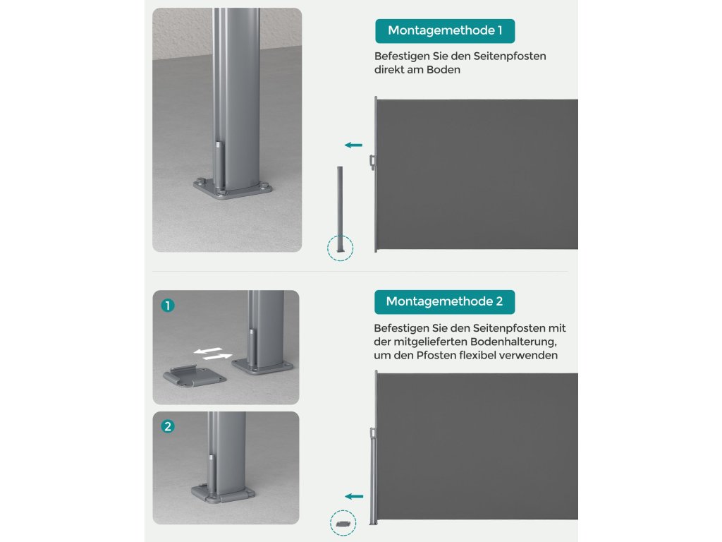 1,6 x 3 m (V x D), boční markýza na balkon, terasu, zahradu a terasu, s montáží na podlahu, ochrana soukromí, sluneční clona, boční roleta, kouřově šedá.