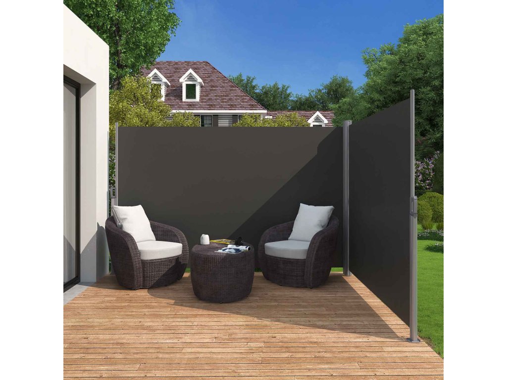Dvojitá boční markýza, stahovací boční markýza pro ochranu soukromí, sluneční clona, boční roleta, pro balkon, terasu a zahradu, kouřově šedá.