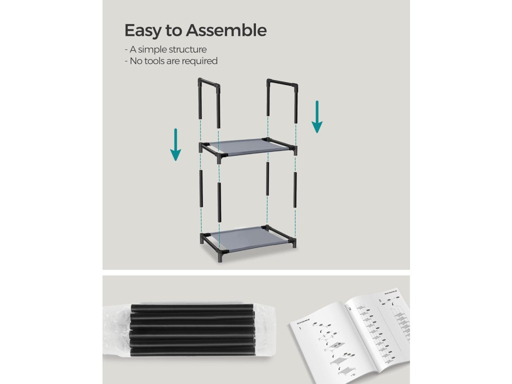 Montáž bez starostí Montáže tohoto stojanu na boty se nemusíte bát, protože k dispozici jsou snadno čitelné, ilustrované pokyny a označené díly pro bezproblémovou montáž. Snadnější montáž, snadnější život!.Stabilní domov pro vaše boty Buďte si jisti, že tato police na boty má dlouhou životnost! Je vyrobena z pevných kovových trubek a odolné netkané textilie, která poskytne vašim botám stabilní a spolehlivou oporu.Úspora místa a zároveň prostornost Tento desetipatrový stojan na boty o rozměrech 33 x 33 x 173 cm vám pomůže ušetřit drahocenné místo na podlaze a zároveň nabízí spoustu úložného prostoru. Proč si tedy nedopřát tento prostorný regál pro uklizenou domácnost?.Pro flexibilní použití Tento stojan na boty můžete použít podle svého: rozdělit ho na 2 části a používat je v oddělených místnostech nebo odstranit některé police, aby se do něj vešly vyšší boty nebo boty - flexibilní, že?Všestranný Pozvěte tento organizér na boty do předsíně, obývacího pokoje, šatny, ložnice nebo kamkoli jinam, kde potřebujete další úložný prostor. Ať už stojan na boty používáte kdekoli, vždy udrží vaše boty v čistotě a pořádku.| Kategorie: | Botníky |