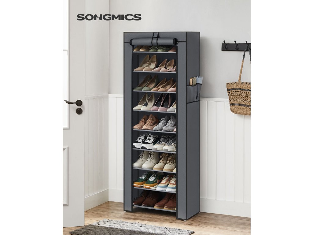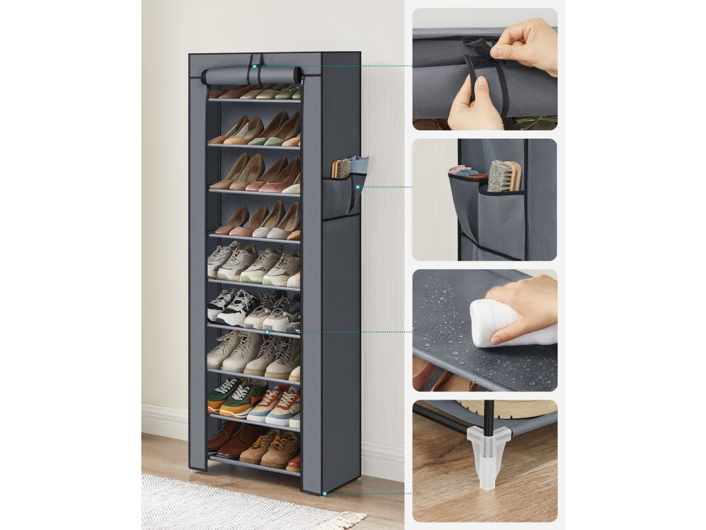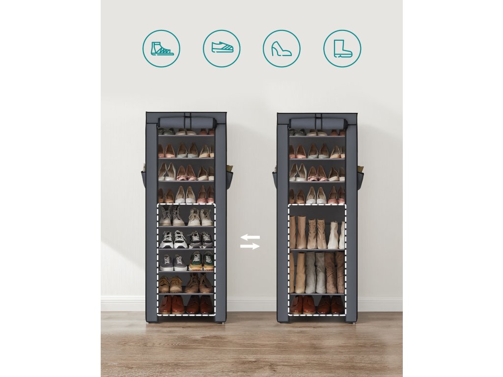 10patrový botník až pro 27 párů bot, volně stojící organizér 58 x 28 x 160 cm, šedá.