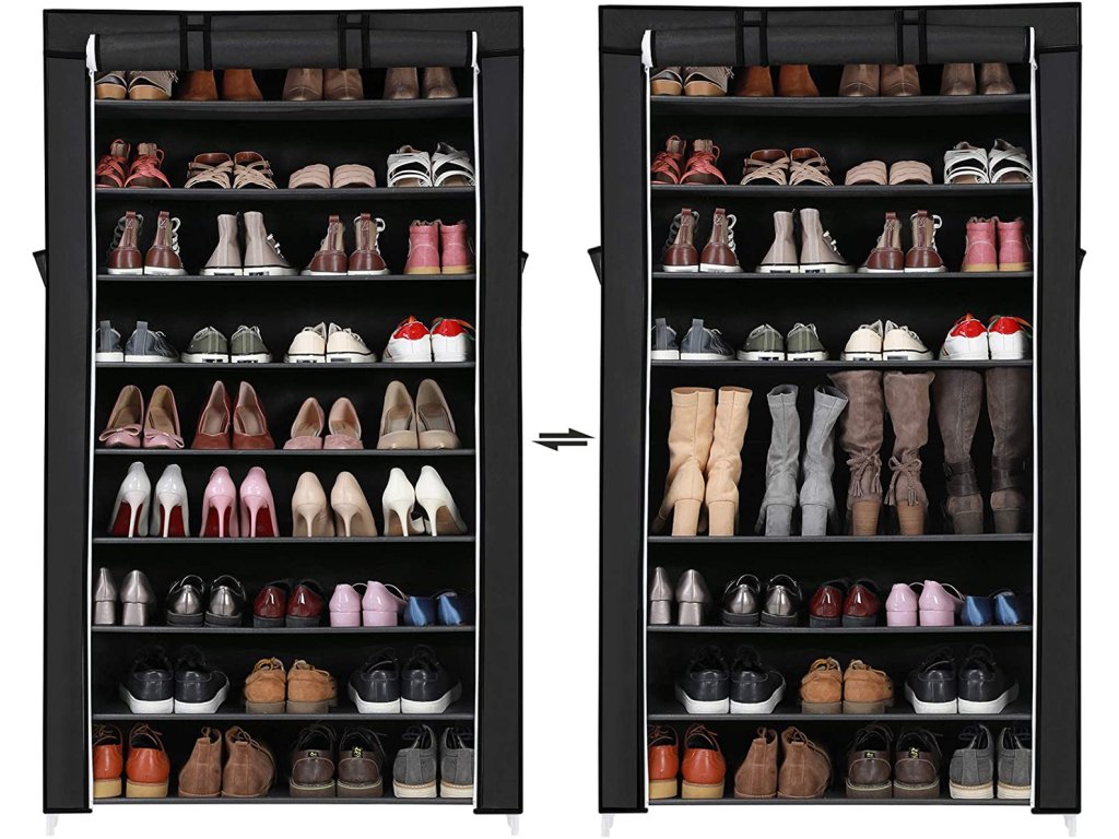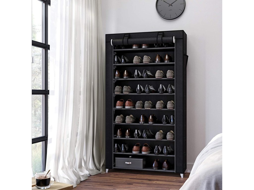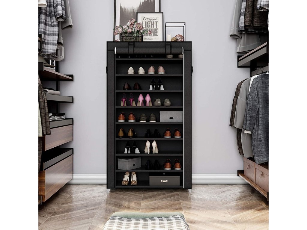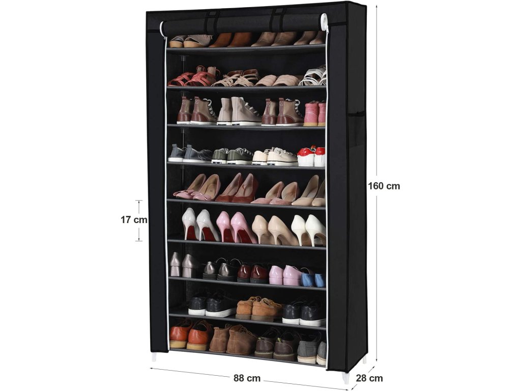 Barva: černá, rozměry: D x Š x V: 88 x 28 x 160 cm (34,6" x 11" x 63"), materiál: netkaná textilie + ocelové trubky + plastové díly.Lze do něj uložit až 45 párů bot a udržovat v něm pořádek.