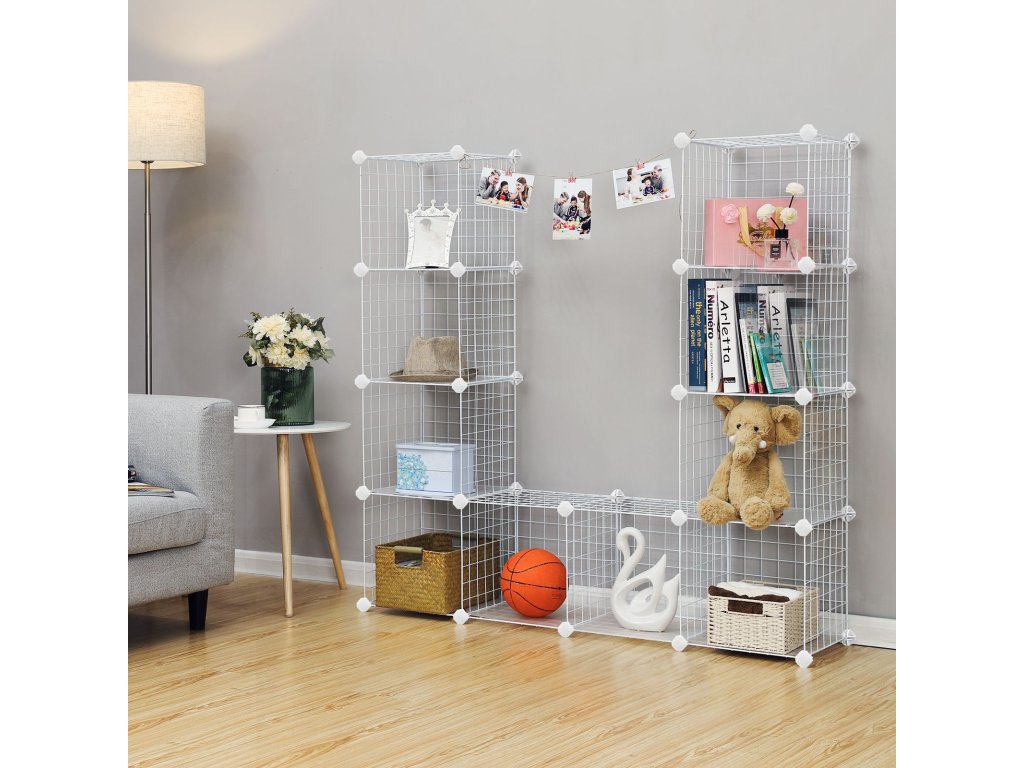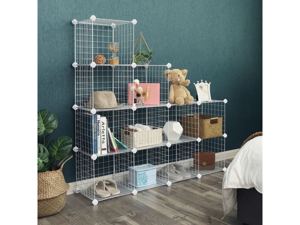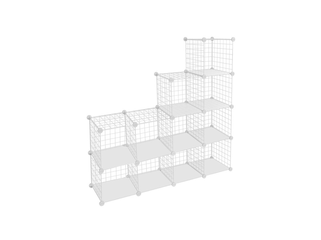 Vyhovuje vašim potřebám: Kovový úložný regál s 12 kostkami si můžete sestavit podle svých potřeb. Schodišťový tvar, obdélníkový tvar, kostka na kostce - přizpůsobte si tento regál svému prostoru.Mohu dostat více místa na poličce? Potřebujete ještě prostorný regál, který se vám vejde do sklepa, pod schody nebo provizorně do dětského pokoje? Takový, který lze snadno sestavit a rozložit a stylově do něj uložit věci? Hledáno, nalezeno!