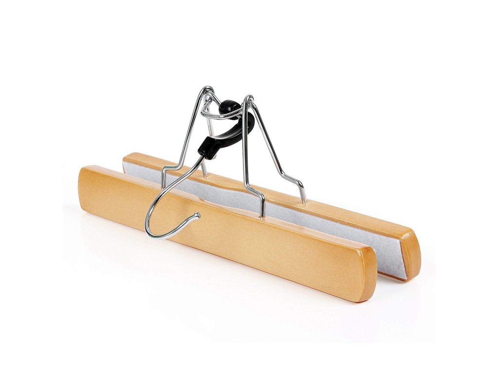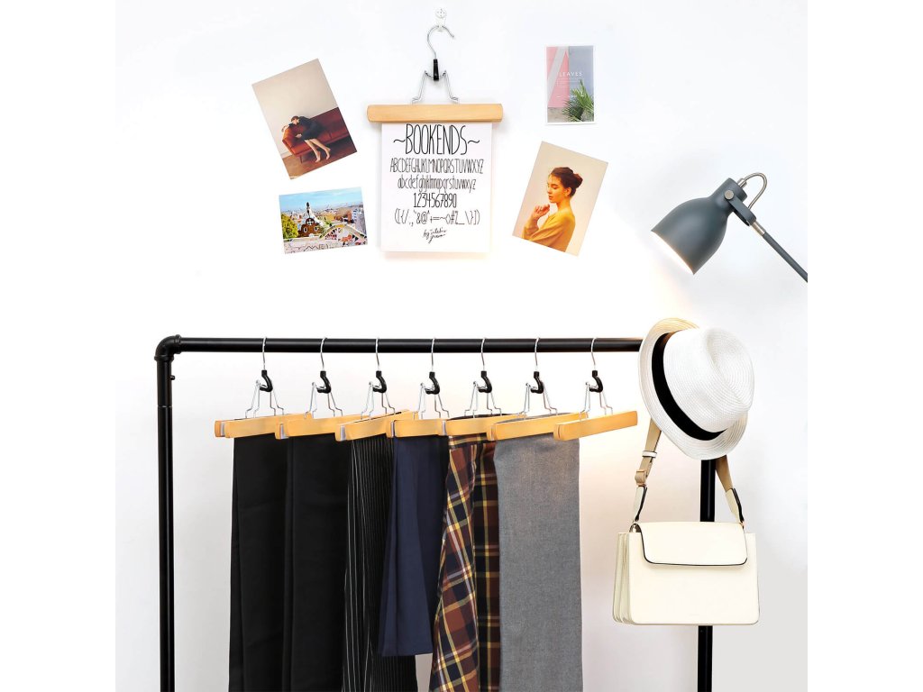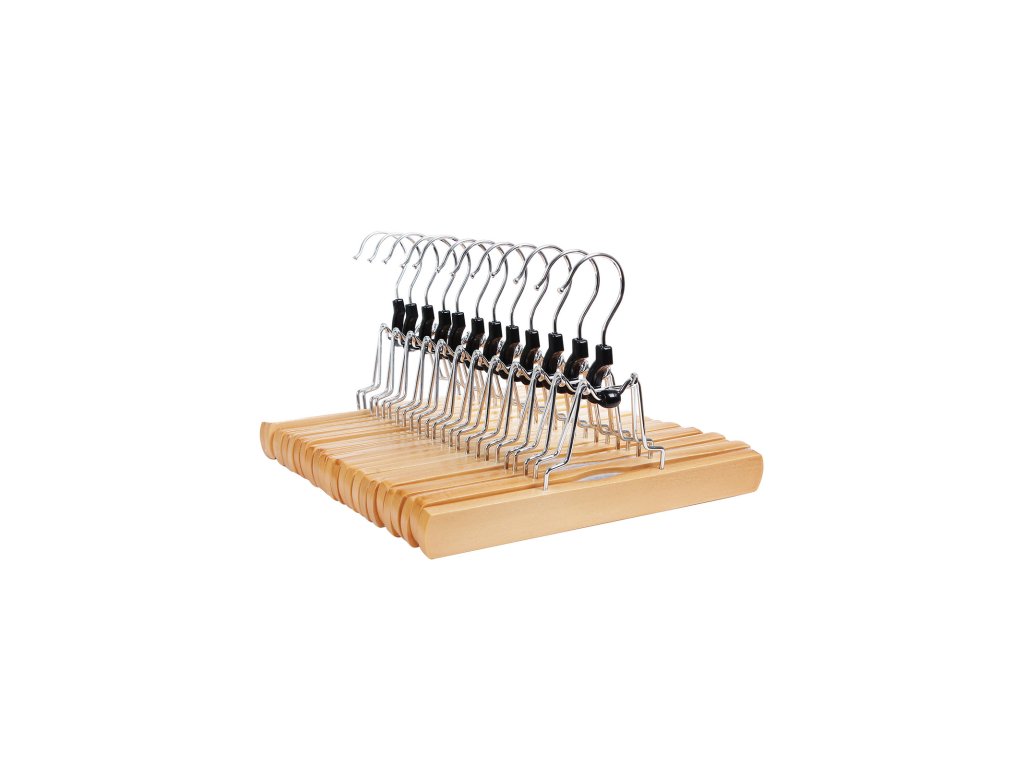 12 ks dřevěných věšáků na kalhoty, neklouzavý chromový háček, 360 stupňů otočný, přírodní.