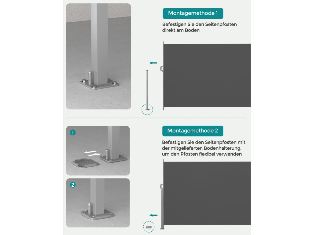 Ochranná markýza na terase: Tato boční markýza vás chrání před pohledy sousedů; nyní si můžete nerušeně vychutnávat snídani na terase; pro bezpečnost je opatřena dětskou pojistkou.2 způsoby instalace tyče: Namontujte podlahový držák na zem a zasuňte základnu sloupu do podlahového držáku. nebo jednoduše připevněte sloupek přímo na zem, abyste získali trvalejší variantu.Robustní a odolná proti korozi: Tyč a kryt této markýzy jsou vyrobeny z vysoce kvalitního železa pro pevnou oporu a práškově lakovaný povrch je udržuje odolné proti korozi a rzi.Prémiová tkanina: Hustá tkanina o hmotnosti 220 g/㎡ dobře chrání vaše soukromí; také prošla testem stálosti barev TÜV Rheinland (zpráva č. 180115798a 001, vlastník zprávy: dodavatel).Co získáte: Stahovací boční markýza SONGMICS o rozměrech 160 x 300 cm, která chrání vaše soukromí na balkoně nebo terase, a podrobný návod, který vám ušetří čas při instalaci.Buďte první, kdo napíše příspěvek k této položce.