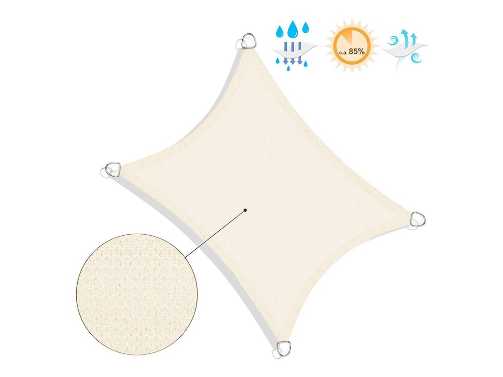 Ochrana před sluncem s plachtou: naše markýza poskytuje 85 % ochranu před sluncem a stín. UV ochrana na balkoně, terase a v zahradě, jako přístřešek pro auto, bazén a jako ochrana před sluncem pro hrající si děti.Propustnost pro vzduch a vodu: díky materiálu může tkaninou pronikat voda a vzduch. To znamená, že se pod látkou nehromadí teplo a při dešti nevznikají vodní vaky.Větší bezpečnost díky vysoce kvalitnímu zpracování: ve švech je všitý vysoce kvalitní popruh, díky kterému je osuška ještě stabilnější. Rohy jsou zesílené a několikrát prošité a kompenzované D-kroužky z nerezové oceli 304.Odolnost proti roztržení a rychleschnoucí: tkanina z HDPE (polyethylen s vysokou hustotou) o hmotnosti materiálu 180 g/m² je odolná proti roztržení a povětrnostním vlivům. Rychle schne, je odolný proti plísním a hnilobě.Stabilní, bez závěsů na látku: konkávní (obloukový) střih zajišťuje větší stabilitu sluneční plachty a dává plachtě trvalé napětí, takže nevisí dovnitř.| Kategorie: | Sluneční a stínící plachty |