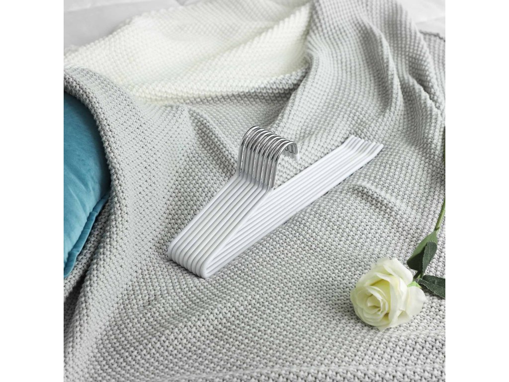 20 balení ramínek na kalhoty, kovová ramínka na šátky, protiskluzová, chromovaná, 38 x 13 cm, bílá.