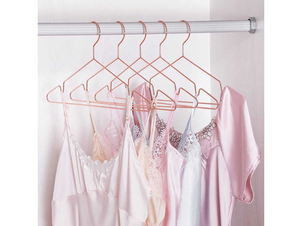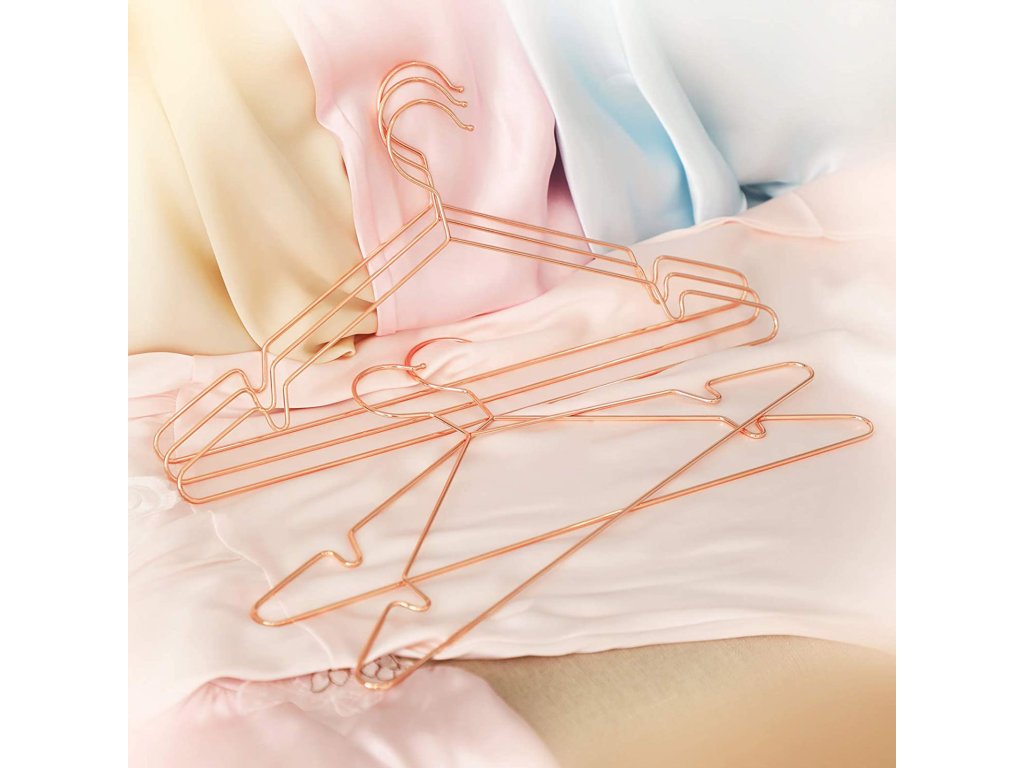 Ramínka na šaty 20 ks, prostorově úsporná ramínka na kabáty, odolná proti rzi, pochromovaná, 42 cm, růžově zlatá.
