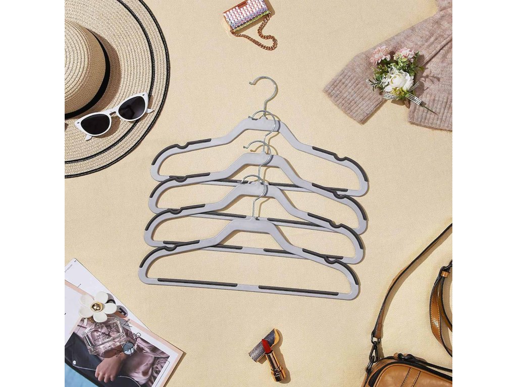 Ramínka na oděvy s 360° otočným háčkem, dvojitá protiskluzová ochrana, šedá.