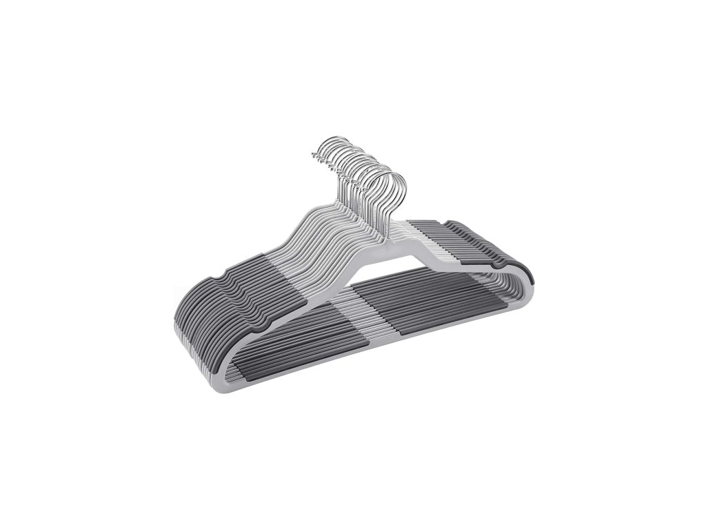 Láska k pořádku: Milujete oblečení, ale neradi ho vidíte pohromadě ve skříni? Naštěstí toto balení 20 ramínek udrží vaše oblečení v bezvadném stavu a jejich design s plochou hlavou dodá vašemu šatníku elegantní vzhled.SLIP NEBO STAY? Nic nezpůsobí ve skříni větší zmatek než oblečení, které odmítá zůstat na ramínku. Dvojité protiskluzové proužky na ramenou a tyči na kalhotách tomu učiní trvalý konec.