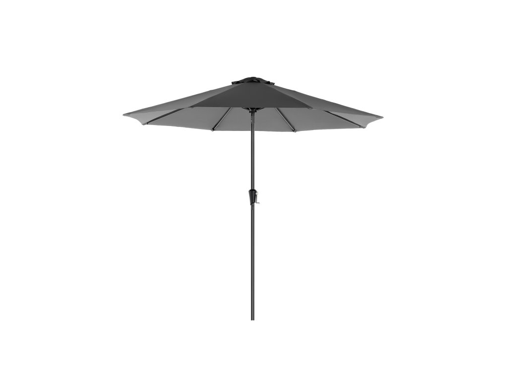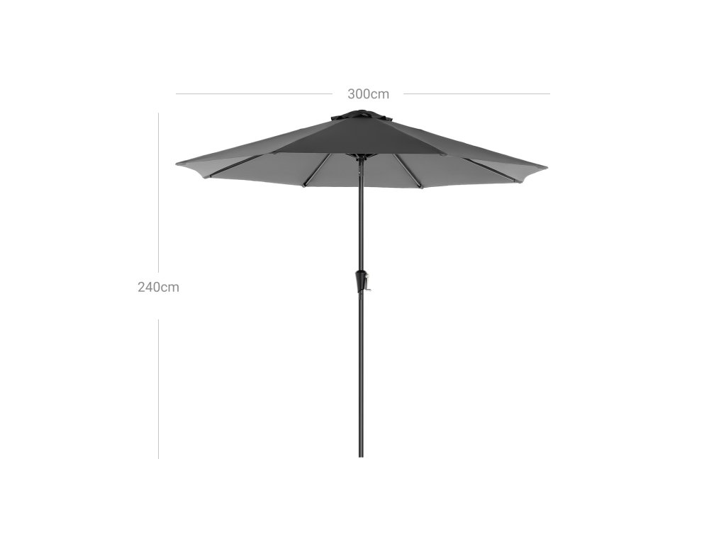 290 cm zahradní slunečník, UPF 50+, sluneční clona, náklon 30° ve 2 směrech, klička pro otevírání a zavírání, pro venkovní zahrady, bazény, balkóny, terasy, podstavec není součástí balení, šedá.