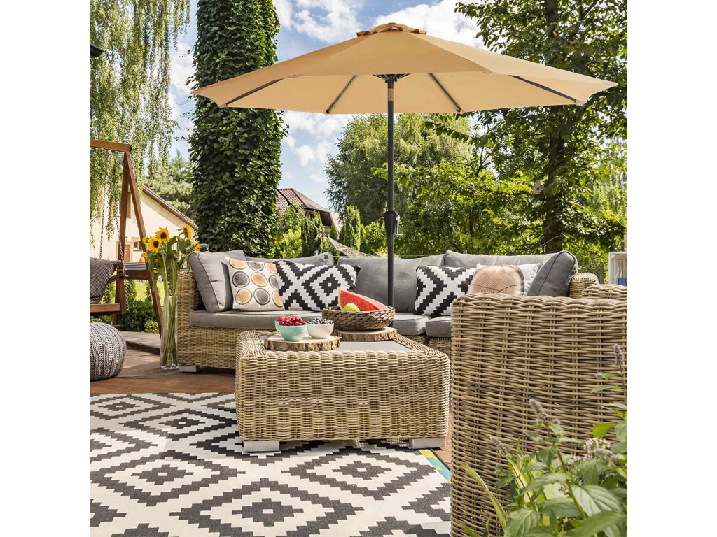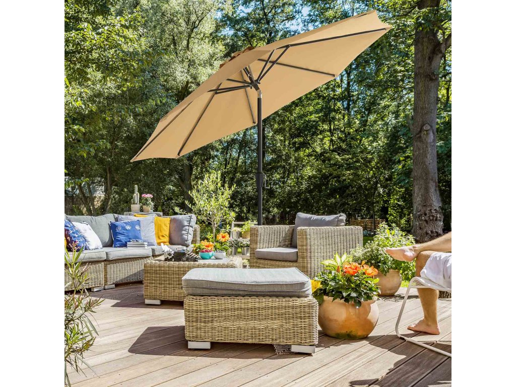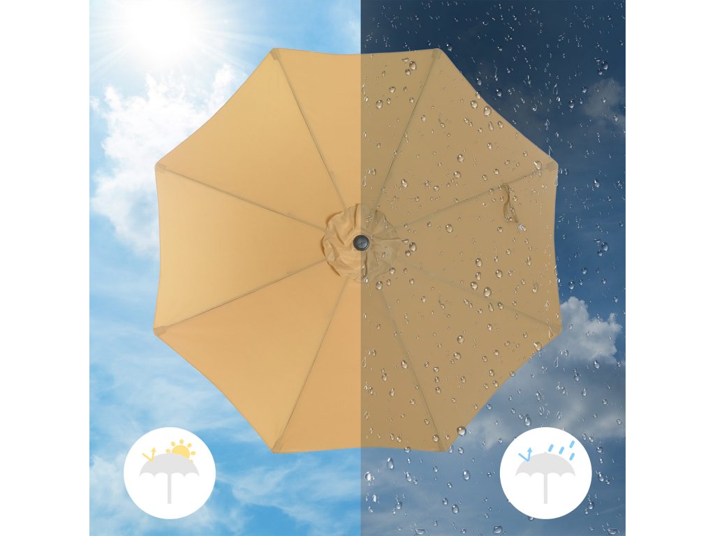 Snadné otevírání a zavírání Tento slunečník pohodlně otevřete a zavřete pouhým otočením kličky. Rychle a snadno!Oboustranné naklápění Stříška tohoto slunečníku se může naklápět v úhlu 30° ve dvou protilehlých směrech - stačí stisknout tlačítko na kloubu a stříška se nakloní. Kloub ze slitiny zinku je pevnější a bezpečnější než běžné klouby ze slitiny hliníku.Ochrana před sluncem a deštěm Polyesterová stříška o hmotnosti 180 g/m² s ochranou proti slunci UPF 50+ blokuje více než 98 % UV záření. Je také vodoodpudivý, aby vás ochránil před deštěm.Pevná a odolná žebra Žebra tohoto zahradního slunečníku jsou pevná a odolná, protože jsou vyrobena z kvalitní oceli s práškovým nástřikem, která je odolná proti korozi a zajišťuje dlouhou životnost.Vhodné pro různá místa Tento dia. 290 cm může zastínit 4-6 osob na zahradě, na terase, u bazénu, na balkoně nebo jinde.| Kategorie: | Zahradní slunečníky a doplňky |