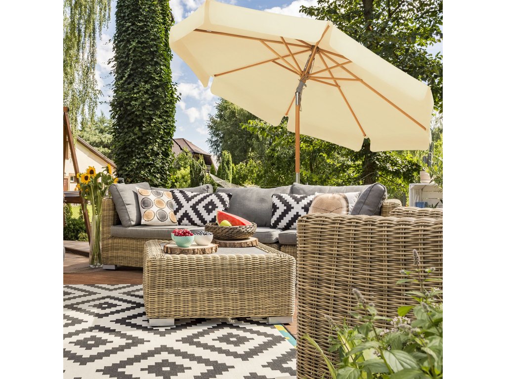 Chraňte se před sluncem: S příchodem krásných dnů se nemůžete dočkat, až si venku odpočinete! Tento slunečník s vynikající ochranou proti slunci ochrání vaši pokožku a umožní vám bezstarostné venkovní stolování.Síla a krása: Dvě části tyče z bukového dřeva jsou pevně spojeny kloubem ze zinkové slitiny; 8 odolných žeber z tvrdého dřeva poskytuje slunečníku stabilní oporu a zároveň dodává terase svěží a přírodní nádech;Žádný strach z hořícího slunce: Nebojte se používat zahradní slunečník ani v těch nejteplejších hodinách! Stříška je vyrobena ze silného polyesteru o gramáži 180 g/m², který je trvanlivý, odolný a nebledne. slouží vám po celé léto!Od východu na západ: Nemusíte každou hodinu přesouvat lehátko, abyste zůstali ve stínu! Jednoduše změňte úhel stříšky podle polohy slunce. díky kvalitnímu pozinkovanému kloubu ze slitiny, který je odolný proti korozi a rozbití.Snadná montáž: přišroubujte horní část tyče ke spodní, připevněte tyč k podstavci (není součástí dodávky), zatáhněte za lano a deštník se otevře. a už si budete užívat vánek na terase!| Kategorie: | Zahradní slunečníky a doplňky |