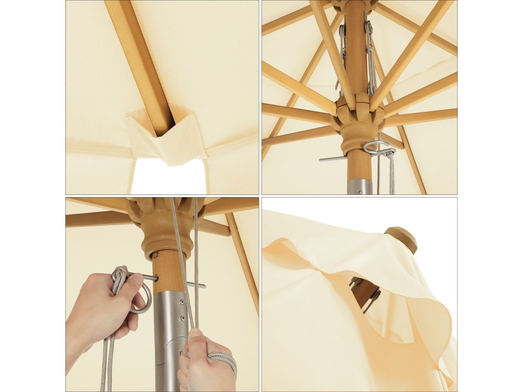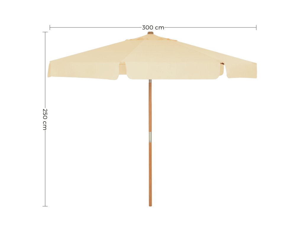3 m zahradní slunečník, osmiúhelníkový slunečník s ochranou proti slunci, dřevěná tyč a žebra, mechanismus naklápění, podstavec není součástí dodávky, pro balkon terasu zahradu venku, béžový.