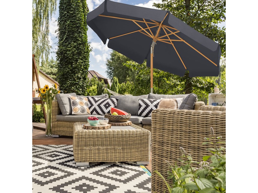 Chraňte se před sluncem: S příchodem krásných dnů se nemůžete dočkat, až si venku odpočinete! Tento slunečník s vynikající ochranou proti slunci ochrání vaši pokožku a umožní vám bezstarostné venkovní stolování.Síla a krása: Dvě části tyče z bukového dřeva jsou pevně spojeny kloubem ze zinkové slitiny; 8 odolných žeber z tvrdého dřeva poskytuje slunečníku stabilní oporu a zároveň dodává terase svěží a přírodní nádech;Žádný strach z hořícího slunce: Nebojte se používat zahradní slunečník ani v těch nejteplejších hodinách! Stříška je vyrobena ze silného polyesteru o gramáži 180 g/m², který je trvanlivý, odolný a nebledne. slouží vám po celé léto!Od východu na západ: Nemusíte každou hodinu přesouvat lehátko, abyste zůstali ve stínu! Jednoduše změňte úhel stříšky podle polohy slunce. díky kvalitnímu pozinkovanému kloubu ze slitiny, který je odolný proti korozi a rozbití.Snadná montáž: přišroubujte horní část tyče ke spodní, připevněte tyč k podstavci (není součástí dodávky), zatáhněte za lano a deštník se otevře. a už si budete užívat vánek na terase!| Kategorie: | Zahradní slunečníky a doplňky |