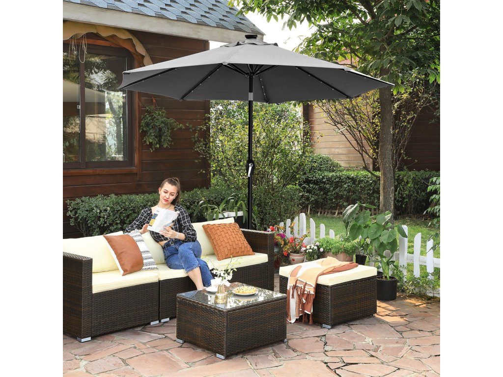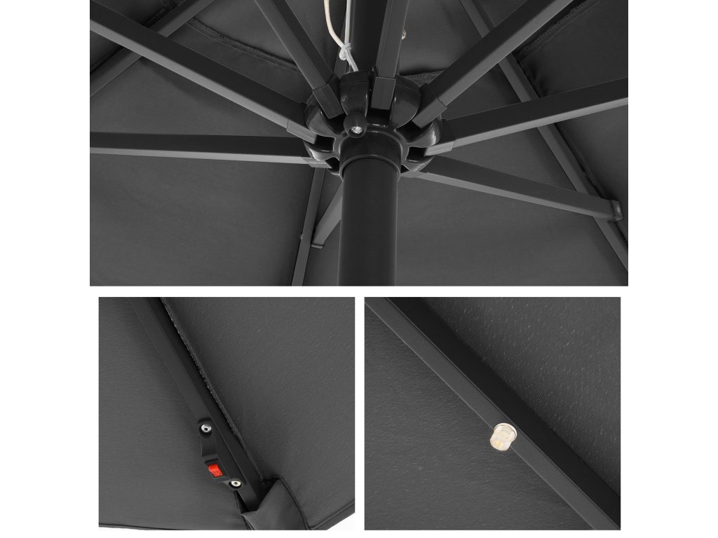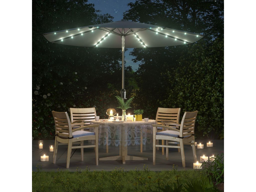 Co získáte: Slunečník o průměru 3 metry s 32 LED světly napájenými solárním panelem na slunečníku, takže si můžete užívat zahradu i večer!| Kategorie: | Zahradní slunečníky a doplňky |