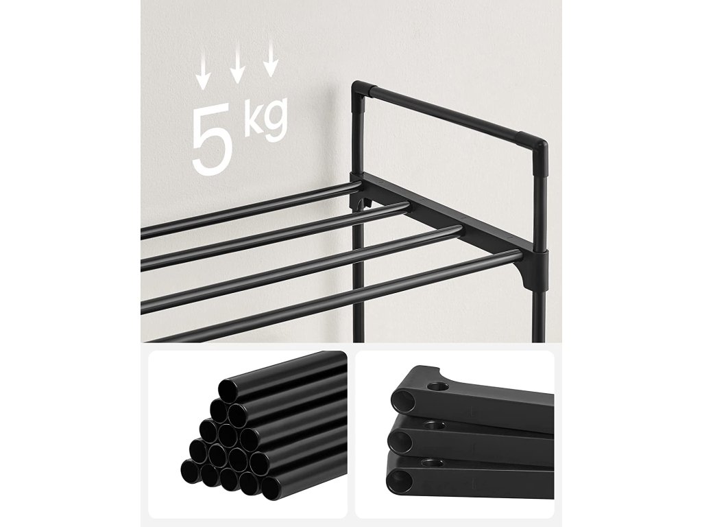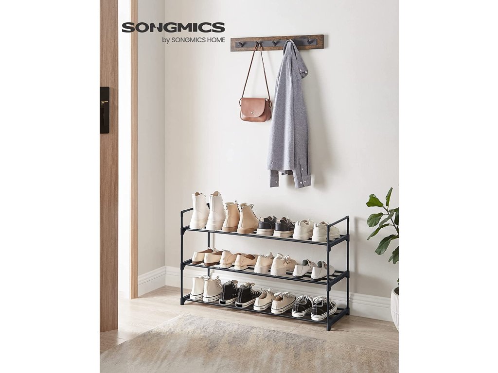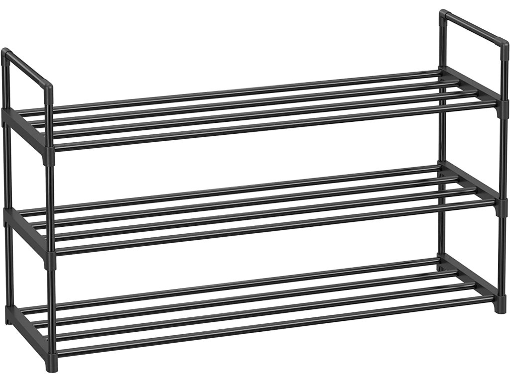 3-patrový botník, organizér na boty, kovový úložný regál, vhodný pro 12 až 15 párů bot, stohovatelný regál na boty, do předsíně, obývacího pokoje, ložnice, šatny, 30 x 92 x 54 cm, černá