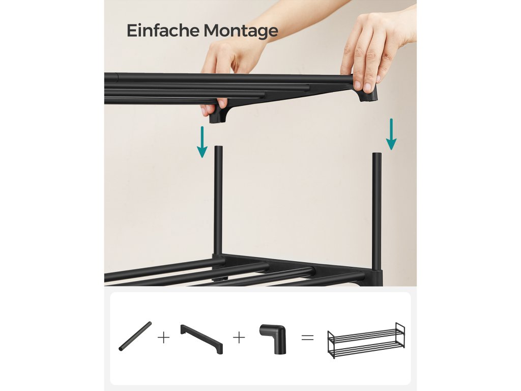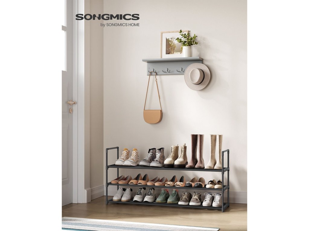 Velká kapacita Tento třípatrový botník o rozměrech 116 x 30 x 55 cm pojme až 15 párů pánských nebo 18 párů dámských bot. Pomáhá udržovat boty uspořádané a snadno přístupnéRobustní a odolné Silné kovové trubky spojené kvalitními plastovými spojkami tvoří robustní polici na boty. Každé patro unese až 12,5 kg a poskytne vašim botám silnou oporu.Montáž bez použití nářadí Montáž je snadná, stačí ručně spojit očíslované díly pomocí plastových konektorů. Žádné nářadí není potřeba!Snadné čištění Díky hladkému povrchu lze tento organizér na boty snadno otřít měkkým vlhkým hadříkem, což šetří váš čas a energii.Hodí se na různá místa Jednoduché linie a prostorově úsporná postava dělají z této kovové police ideální úložné řešení pro vaši předsíň, ložnici, šatnu nebo dokonce obývací pokoj.| Kategorie: | Botníky |