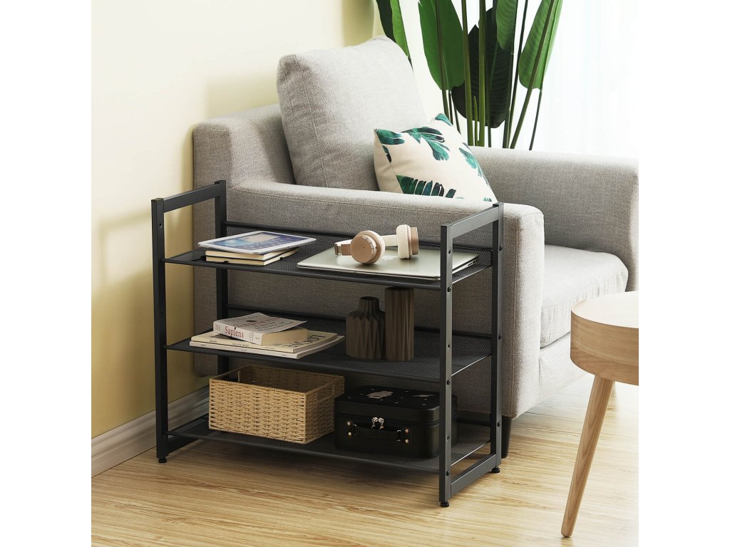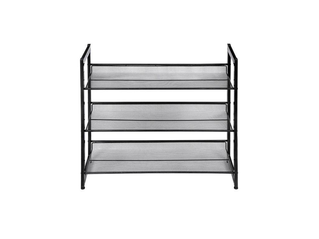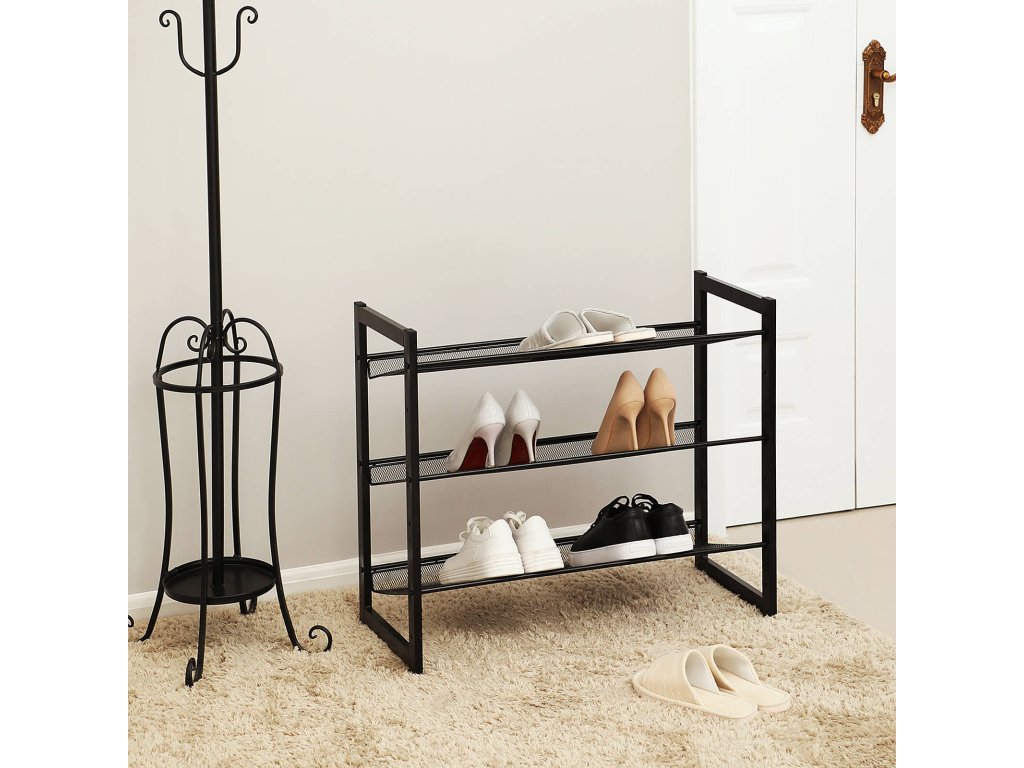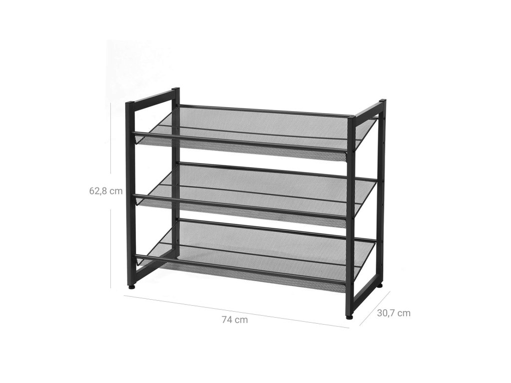 3-patrový stojan na boty, ocelová síťovina, plochý nebo šikmý stohovatelný stojan na boty pro 9 až 12 párů bot, černý.