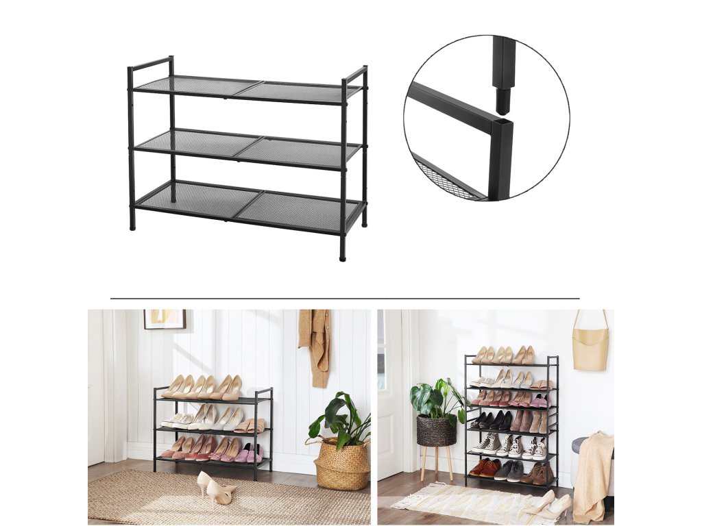 3-patrový stojan na boty, stohovatelný organizér na boty, 9-12 párů bot, kovový stojan na boty, do předsíně, obývacího pokoje, koupelny, černý.