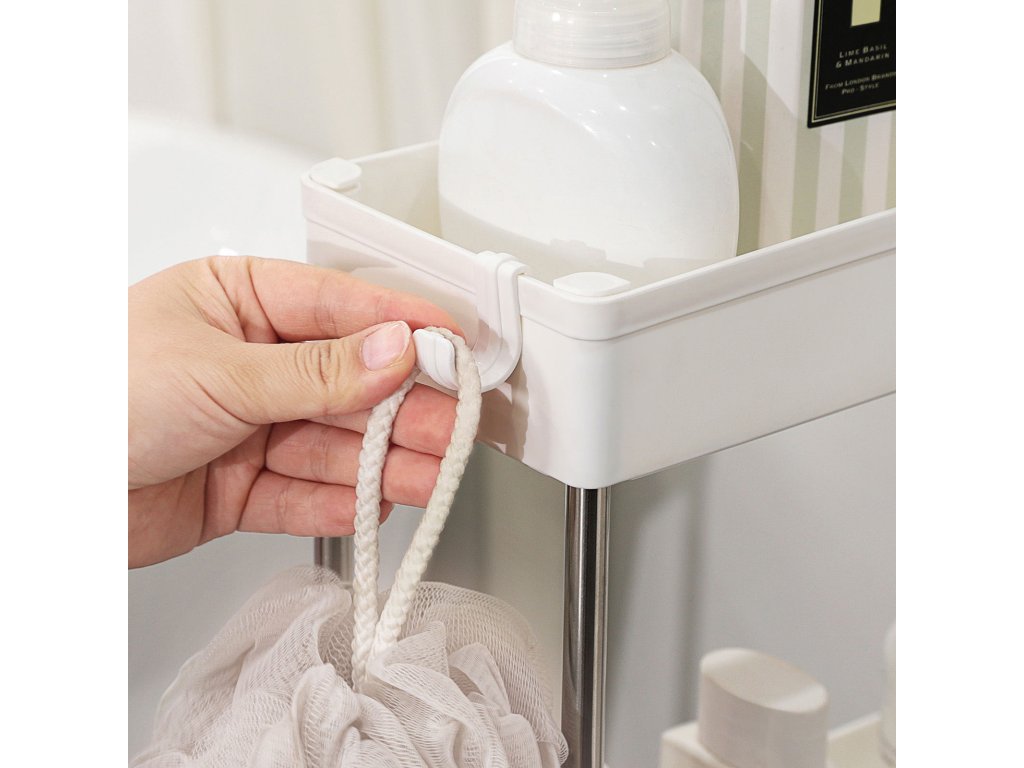 Úspora místa Tento úložný vozík o rozměrech 42 x 13,5 x 61 cm se vejde do stísněných prostor v kuchyni, koupelně, ložnici nebo prádelně a pomůže vám maximálně využít váš prostor.Snadný přesun díky kolečkům Díky 4 hladkým otočným kolečkům můžete vozík přesunout, kam potřebujete, a využít rohový prostor k uspořádání lahví s kořením nebo koupelnových potřeb.3 odnímatelné háčky Tento kuchyňský vozík je vybaven 3 odnímatelnými háčky pro zavěšení chňapek, utěrek nebo špachtlí pro snadný přístup a flexibilní skladování.Spolehlivá pevnost Vodotěsné police z kvalitního PP, které jsou podepřeny 4 robustními kovovými trubkami, jsou stabilní a pojmou až 5 kg potravin, nápojů, sklenic a velkých lahví šamponu a sprchového gelu.Co získáte Úzký vozík na nápoje s kvalitními kolečky pro hladký pohyb, 3 háčky pro zavěšení drobných předmětů, perforovaná konstrukce pro dobré větrání. a skvělý vzhled, který z něj dělá pěkný doplněk do obývacího pokoje, kuchyně nebo koupelny.| Kategorie: | Regály a poličky |