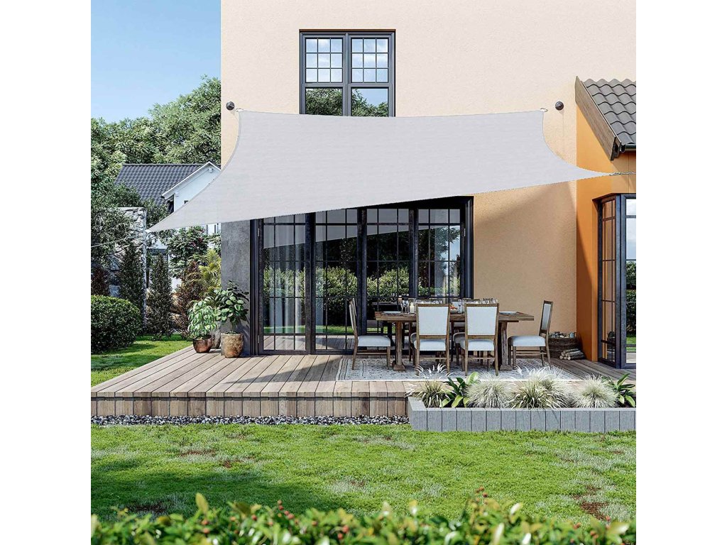3 x 4 m stínící plachta, ochrana proti slunci, vyrobeno z plastu HDPE odolného proti roztržení, UV ochrana blokuje 85 % slunečních paprsků, šedá.