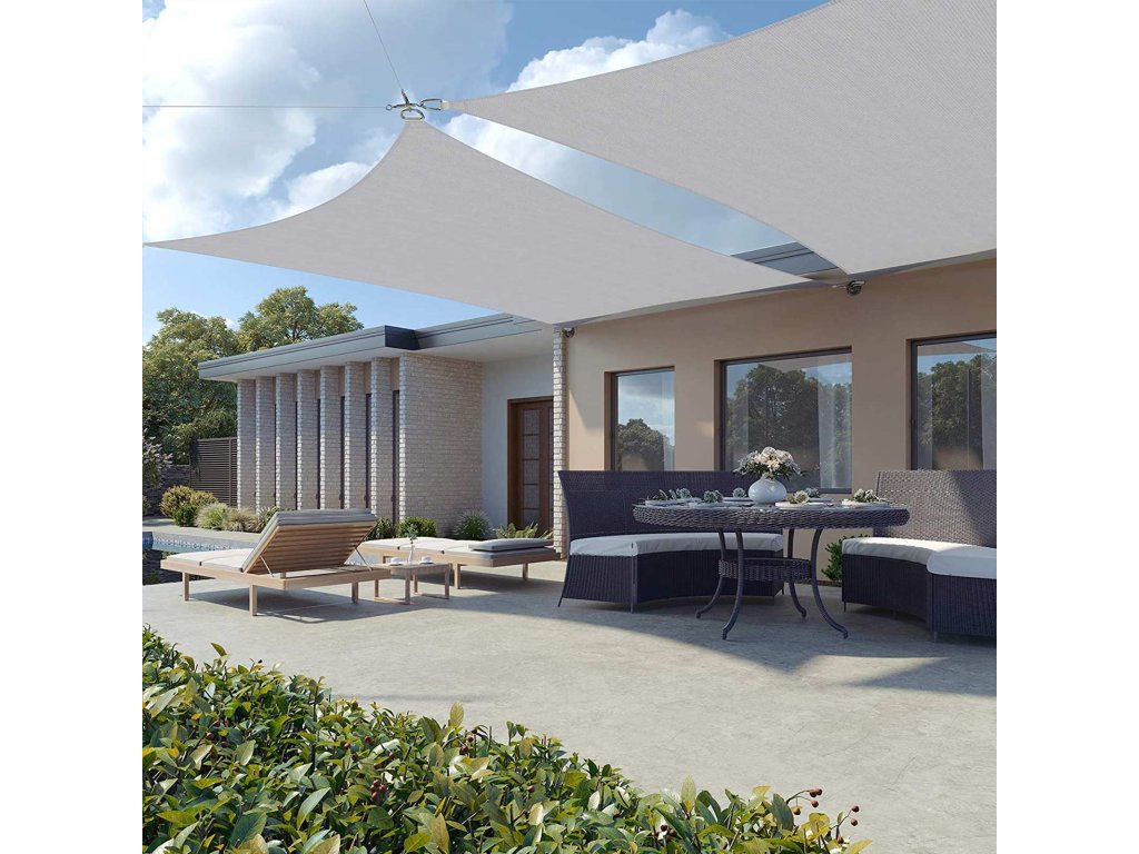 Nastavte plachtu: až vám v létě bude na terasu svítit slunce a vy budete muset ustupovat s rakovinově červenou kůží, bude čas na vhodnou ochranu před sluncem. Stylovou alternativou markýz je tato sluneční plachta o rozměrech 3 x 4 m, která odpuzuje 85 % slunečních paprsků a je propustná pro vodu a vzduch.Nejlepší příprava proti větru: obdélníková markýza je vyrobena z odolného plastu HDPE (180 g/m²). Konkávní tvar plachty a mírně elastický materiál výrazně snižují riziko poškození i při silném větru.Strom, zeď domu, oblouk růže? Jako upevňovací body pro tuto markýzu jsou uvažovány různé stabilní objekty. K upevnění plachty se používají 4 robustní polyesterové smyčky, 4 nerezové kroužky a 2 m dlouhá lana. Vrtačku tak můžete bez obav nechat v garáži.