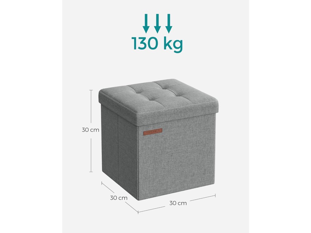 30 cm lavice s úložným prostorem, skládací sedací komoda, úložný box, podnožka, světle šedá.