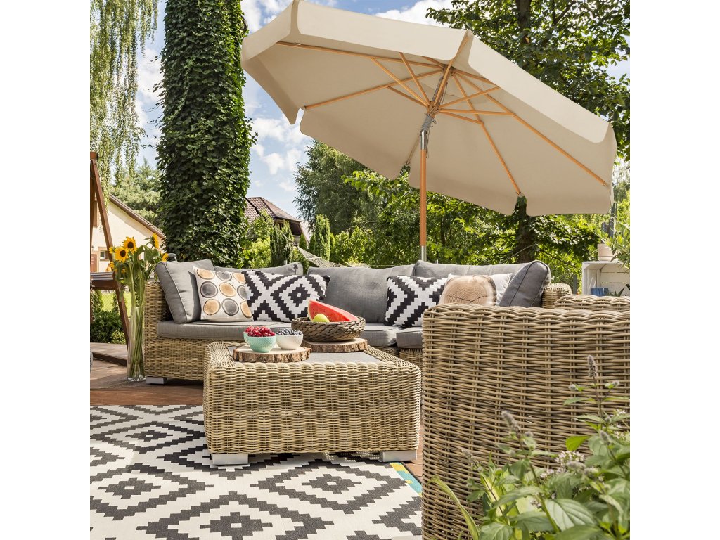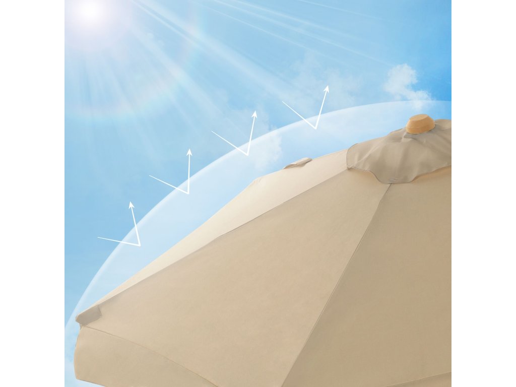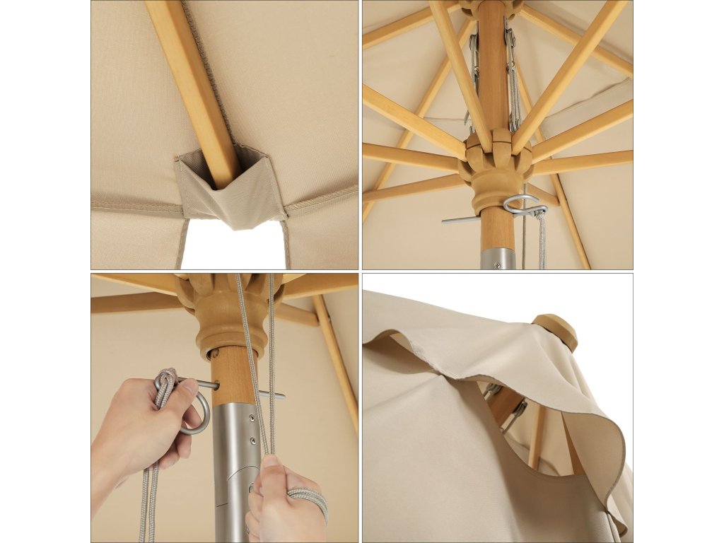 Chraňte se před sluncem: S příchodem krásných dnů se nemůžete dočkat, až si venku odpočinete! Tento slunečník s vynikající ochranou proti slunci ochrání vaši pokožku a umožní vám bezstarostné venkovní stolování.Síla a krása: Dvě části tyče z bukového dřeva jsou pevně spojeny kloubem ze zinkové slitiny; 8 odolných žeber z tvrdého dřeva poskytuje slunečníku stabilní oporu a zároveň dodává terase svěží a přírodní nádech;Moderní