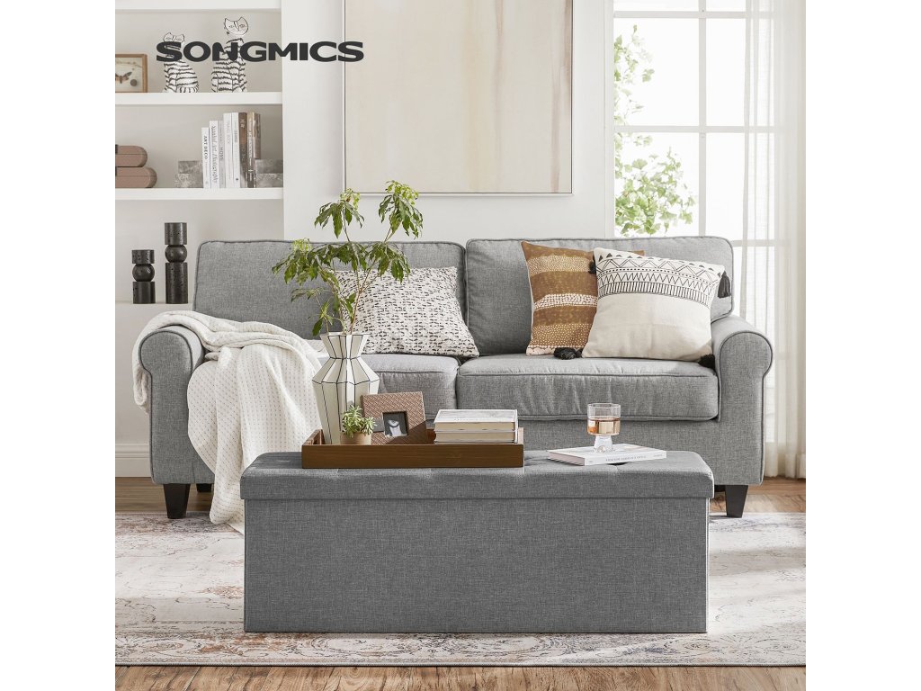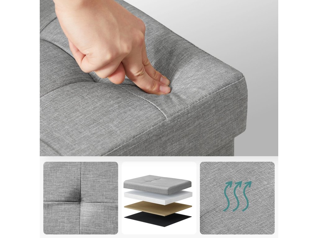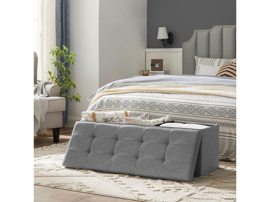 Skládací lavice s úložným prostorem, úložná truhla, stolička na nohy, lavice do ložnice s úložným prostorem, světle šedá.